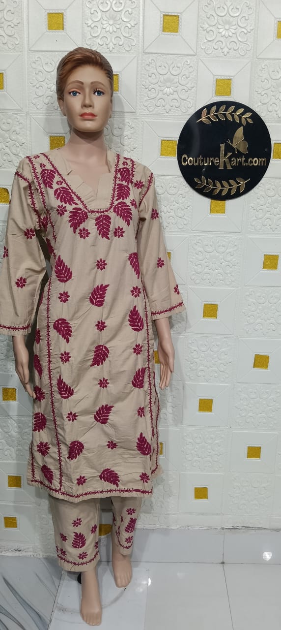 Product Description Experience timeless elegance with this beautiful Chikankari Co-ord Set in pure Khadi cotton, crafted for comfort with traditional charm. The set features delicate chikankari embroidery on a soft, breathable khadi cotton base, paired with a matching bottom for a graceful and stylish look. The natural texture of khadi combined with fine hand-style embroidery makes this outfit perfect for everyday wear, office use, and casual gatherings. Key Features Fabric: Khadi Cotton Set Includes: Chikankari Top & Bottom Work: Authentic Chikankari Embroidery Feel: Soft, Breathable & Eco-friendly Fit: Comfortable and flattering Occasion: Daily Wear, Office Wear, Casual Outings Why You’ll Love It This chikankari khadi set blends classic craftsmanship with modern comfort, making it a perfect choice for an elegant everyday look.