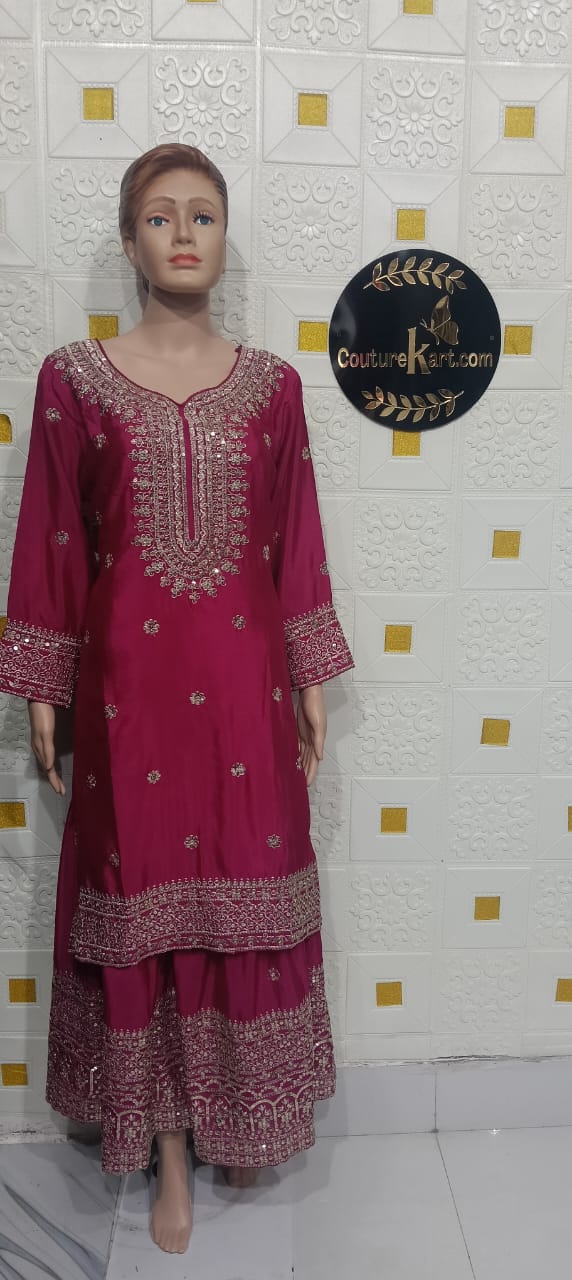 Product Description Embrace traditional elegance with this beautifully designed Pakistani Georgette Sharara Suit, crafted to give you a graceful and luxurious look. Made from soft and lightweight georgette fabric, the outfit features a stylish kurti paired with a flared sharara and a matching dupatta that adds charm and sophistication. The smooth drape and flowy texture of georgette enhance comfort while highlighting the rich detailing, making it perfect for weddings, festive occasions, and party wear. Key Features Fabric: Premium Georgette Style: Pakistani Sharara Suit Set Includes: Kurti, Sharara & Dupatta Texture: Lightweight, Flowing & Comfortable Design: Elegant embroidery / embellishments (as applicable) Fit: Flattering and easy to wear Occasion: Wedding Wear, Party Wear, Festive Functions Why You’ll Love It This sharara suit blends a classic Pakistani silhouette with modern elegance, giving you a timeless look for every special moment.