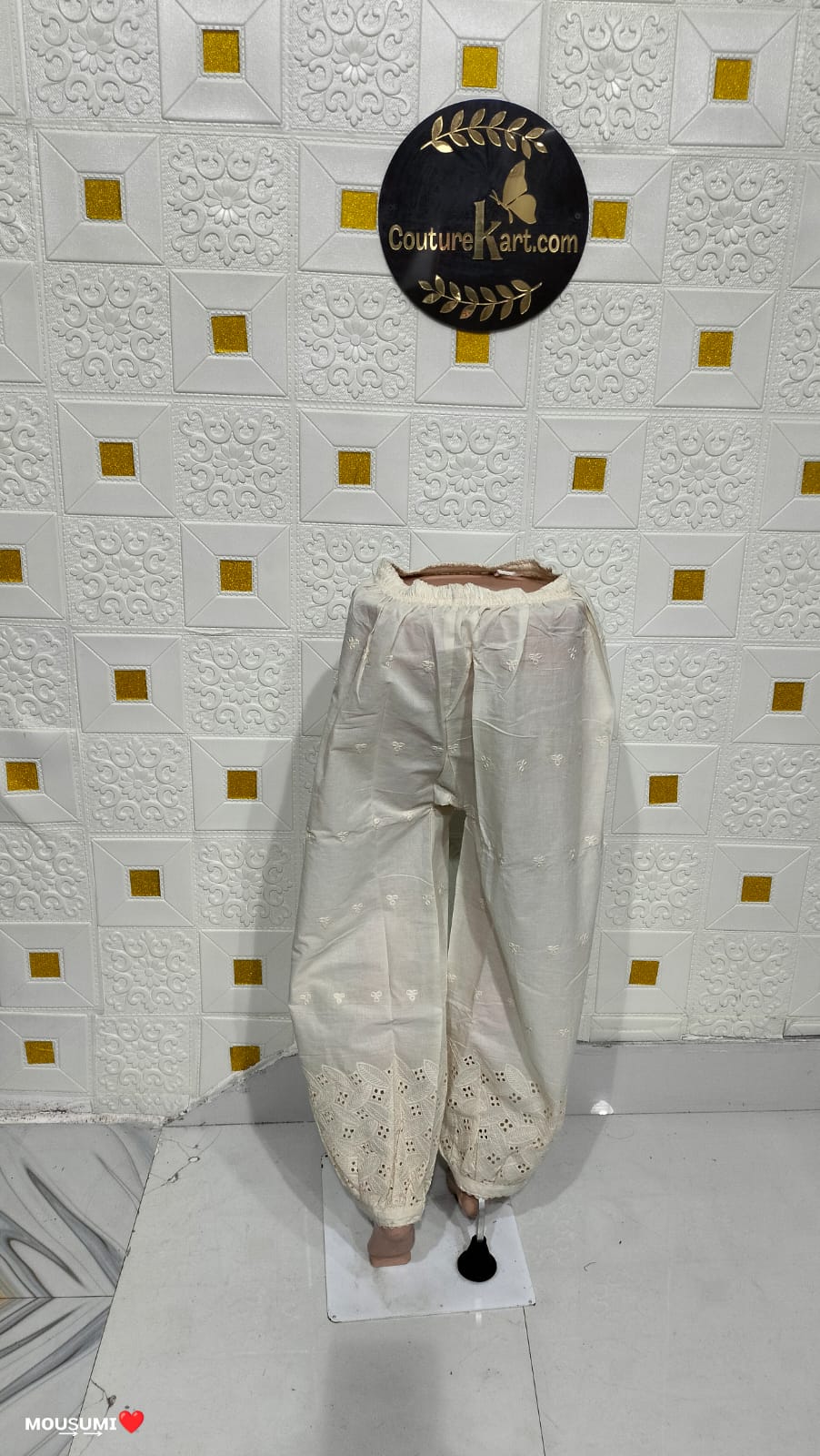 Plazo Ghoti Pant (Cotton) Upgrade your ethnic style with this trendy Plazo Ghoti Pant (Cotton), combining the comfort of a plazo with the unique drape of a ghoti pant. Made from soft, breathable cotton fabric, this pant offers a relaxed fit with a stylish silhouette that blends traditional charm with modern fashion. Perfect for festive occasions, casual outings, and fusion wear, it pairs beautifully with kurtis, crop tops, and tunics. Product Details: Fabric: 100% Cotton Style: Plazo Ghoti Fit: Comfort Fit Waist: Elastic / Drawstring (as applicable) Length: Full Length Occasion: Festive Wear, Casual Ethnic, Daily Wear Pattern: Solid / Printed (as applicable) Package Includes: 1 Plazo Ghoti Pant Care Instructions: Gentle hand wash separately in cold water. Do not bleach. Dry in shade. Iron on low heat.