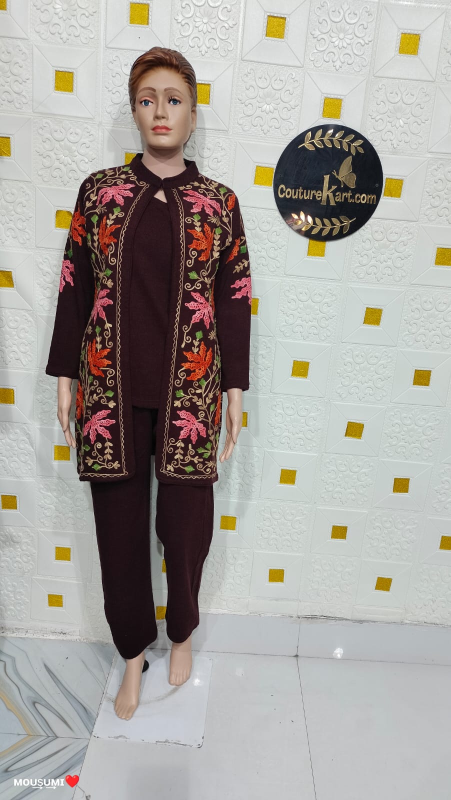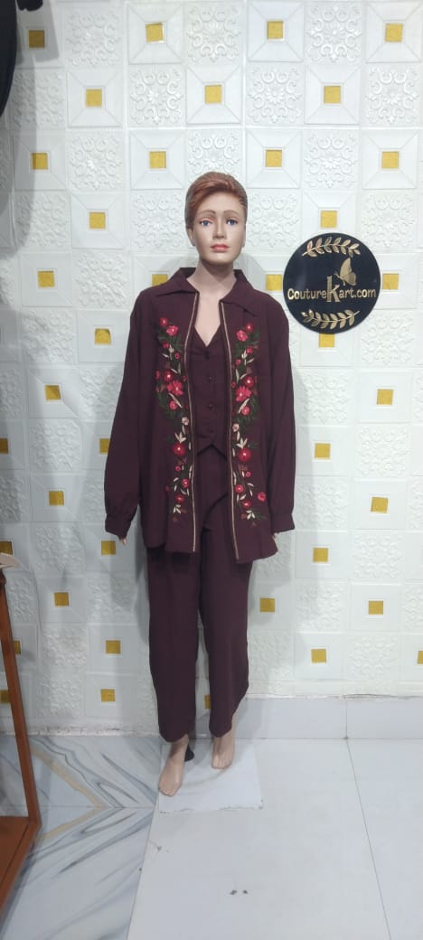 Velvet Inner Jacket 3 Pcs Suit for Women