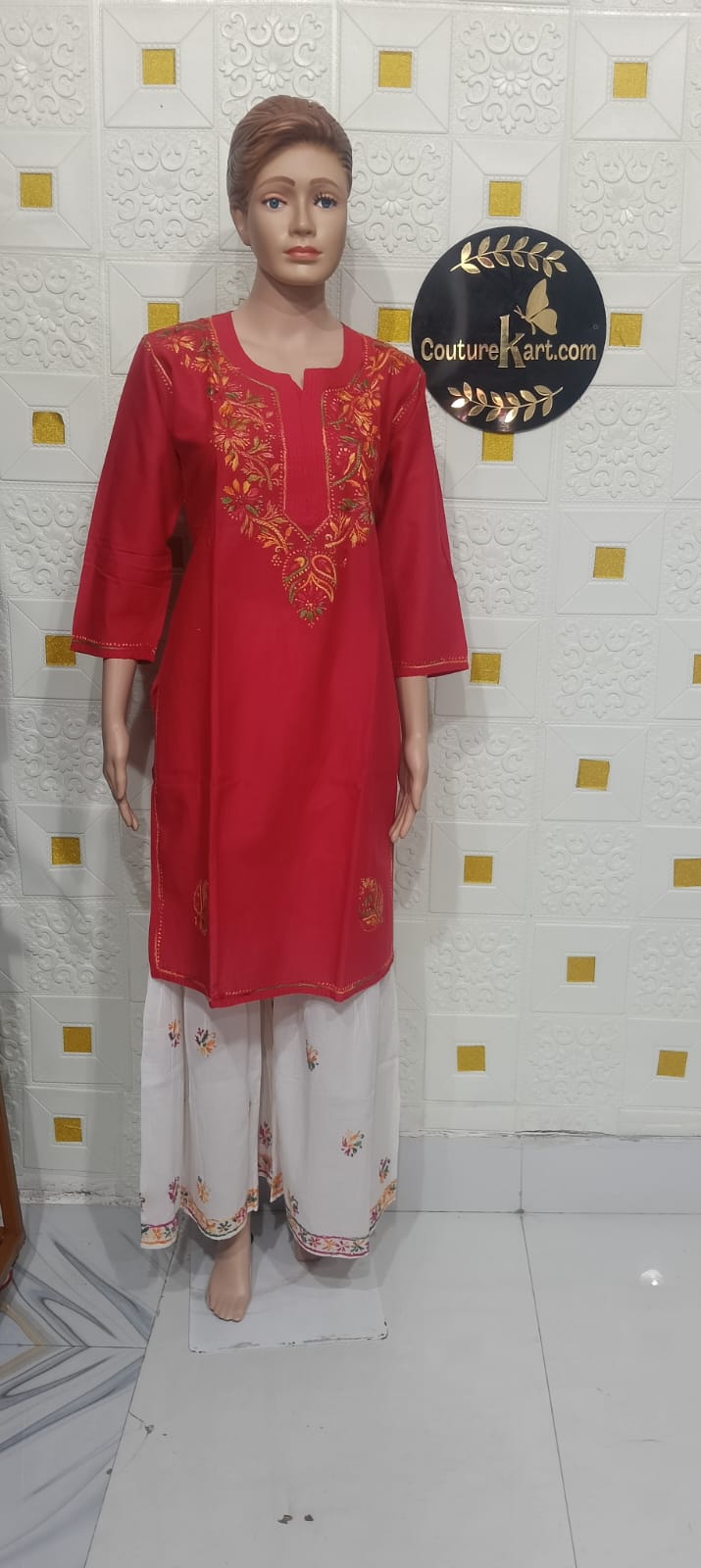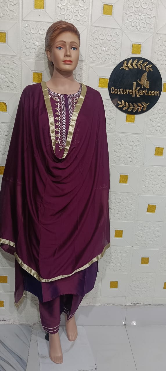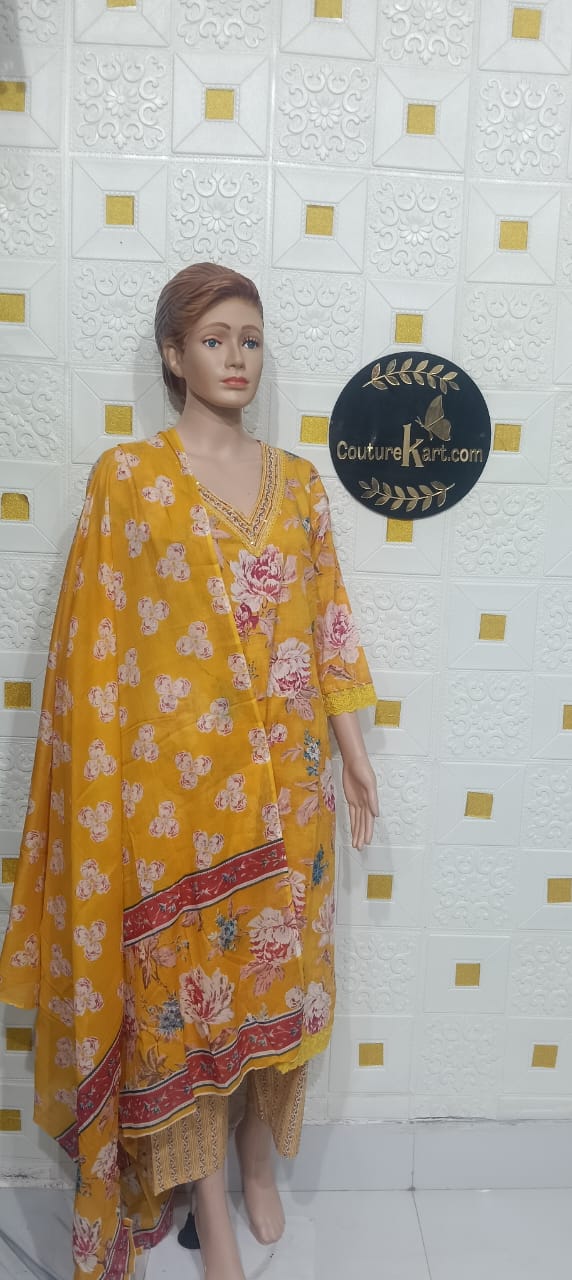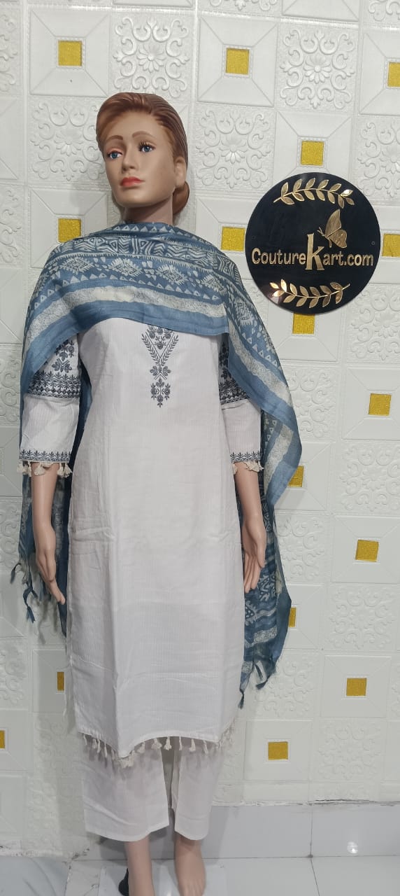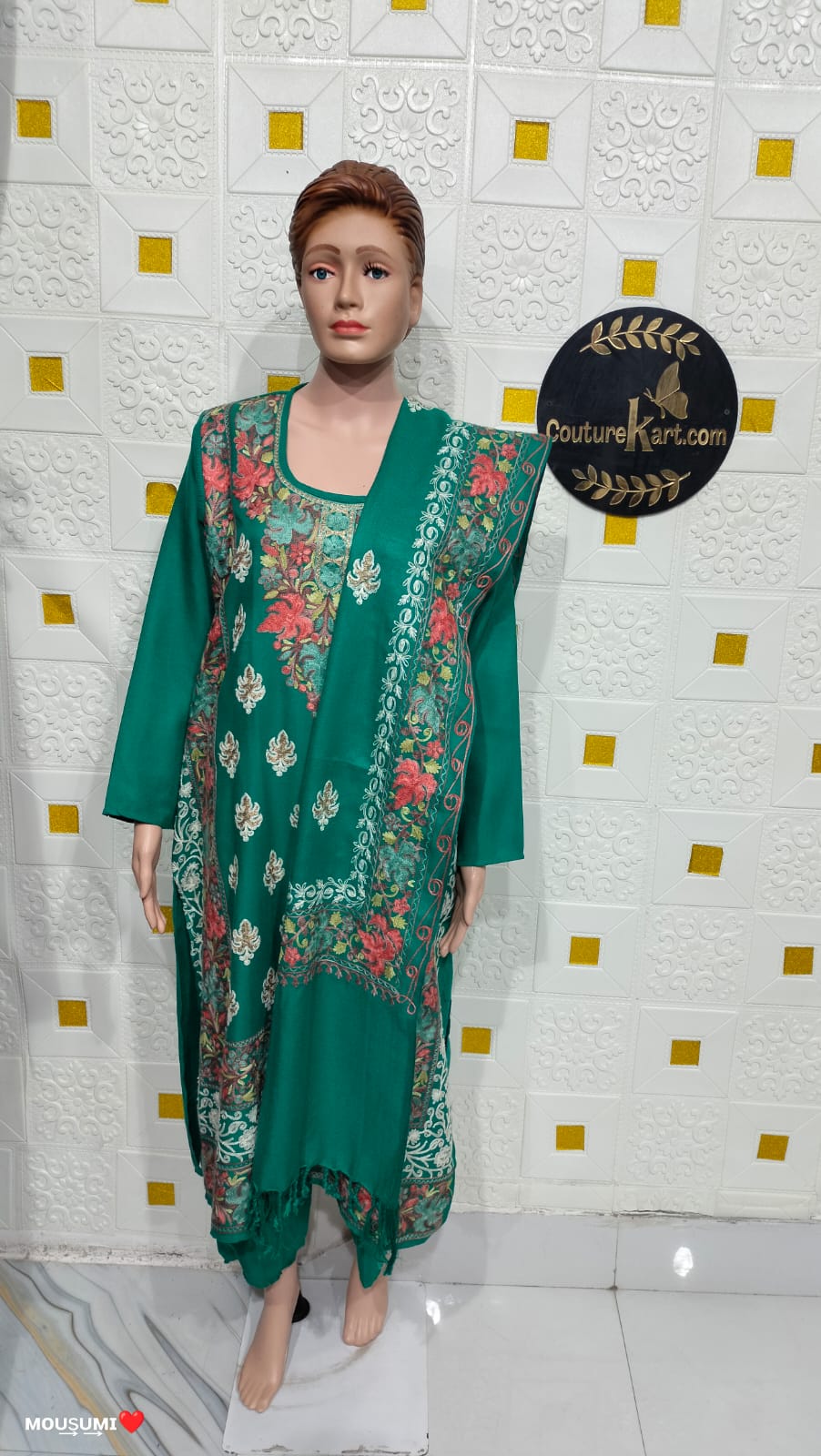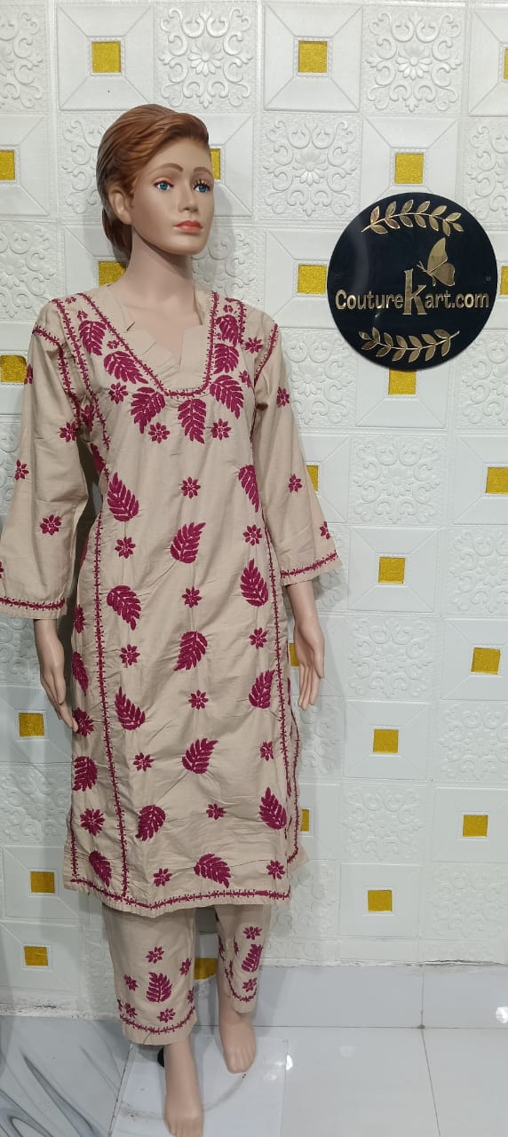 Kashmiri Cotton Embroidered 3 Pcs Suit