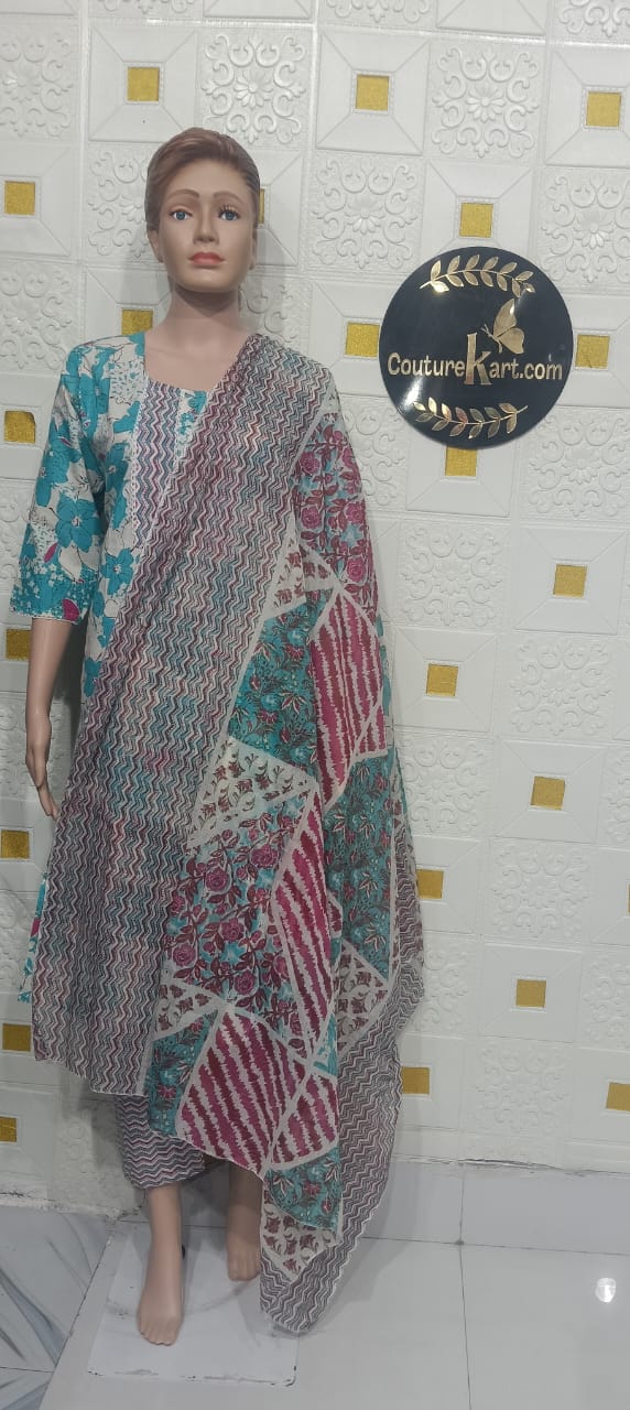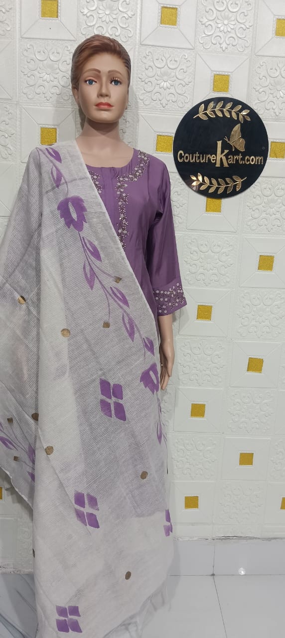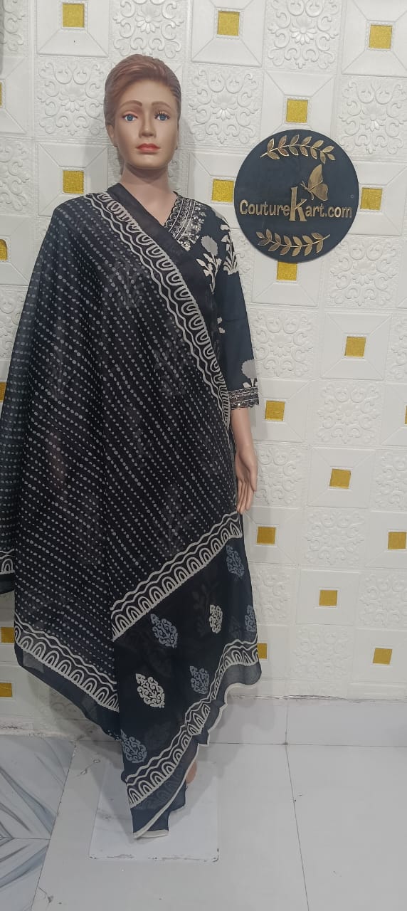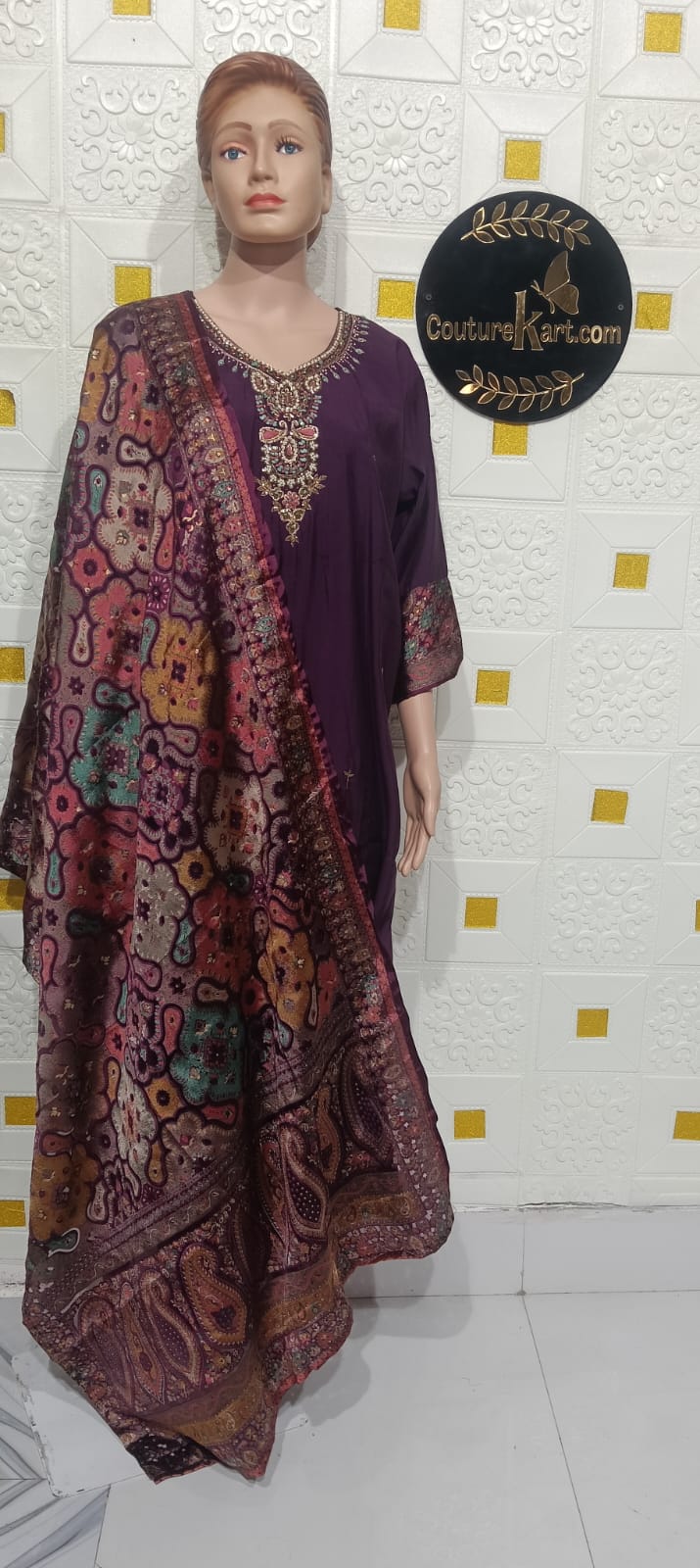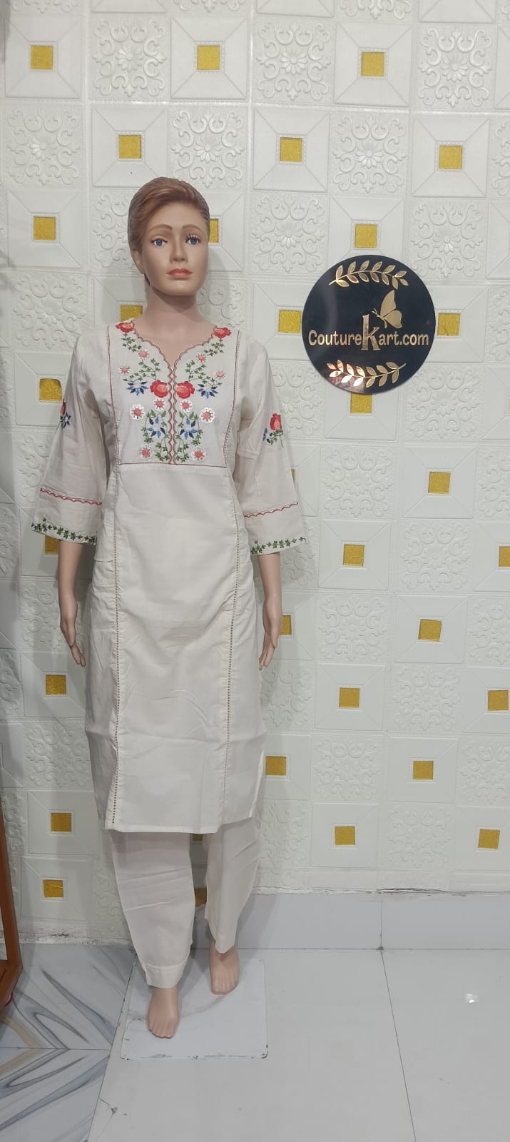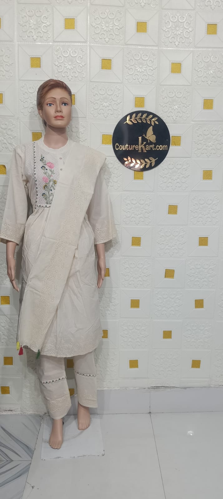 Kashmiri Cotton Embroidered 3 Pcs Suit