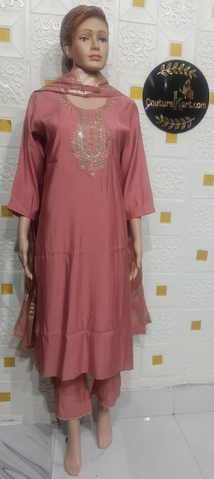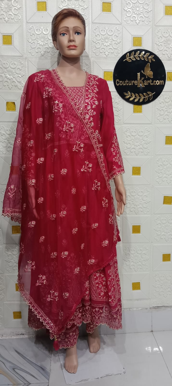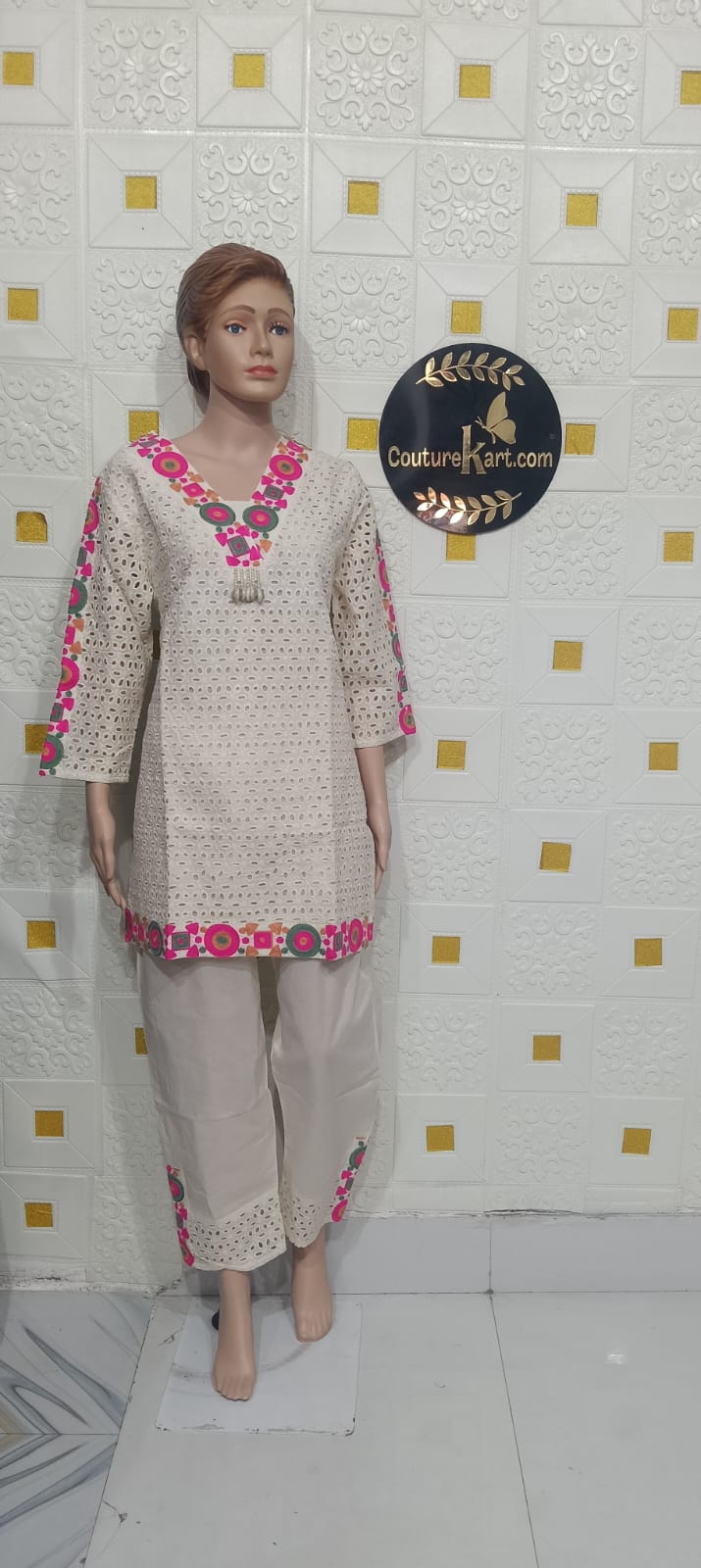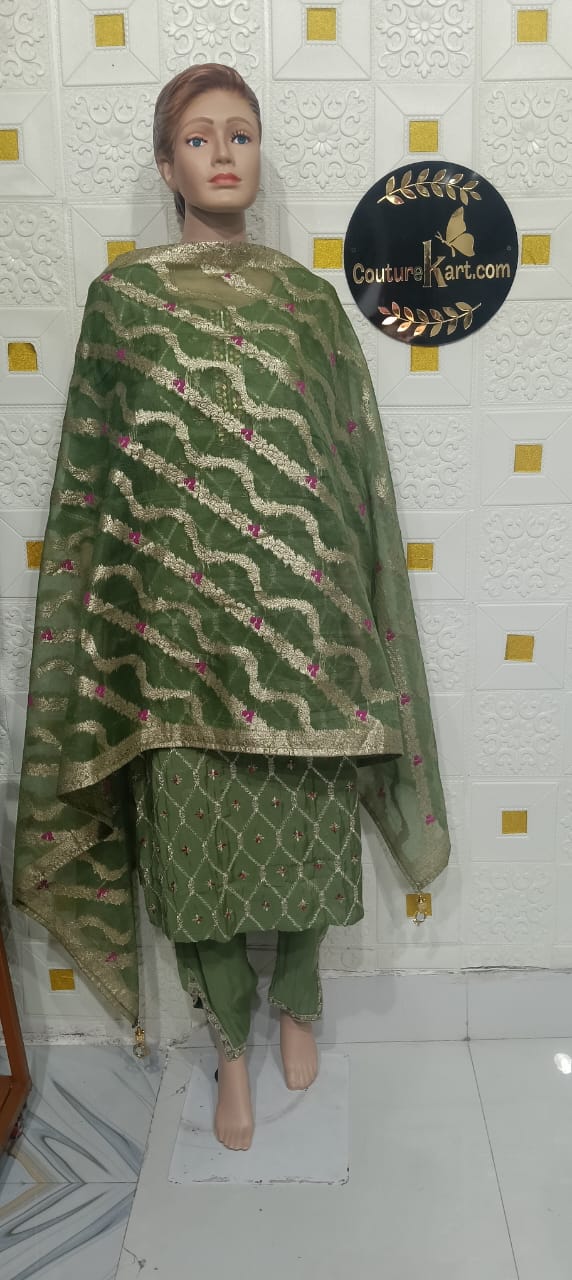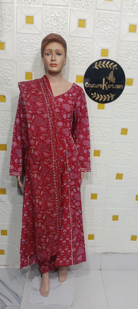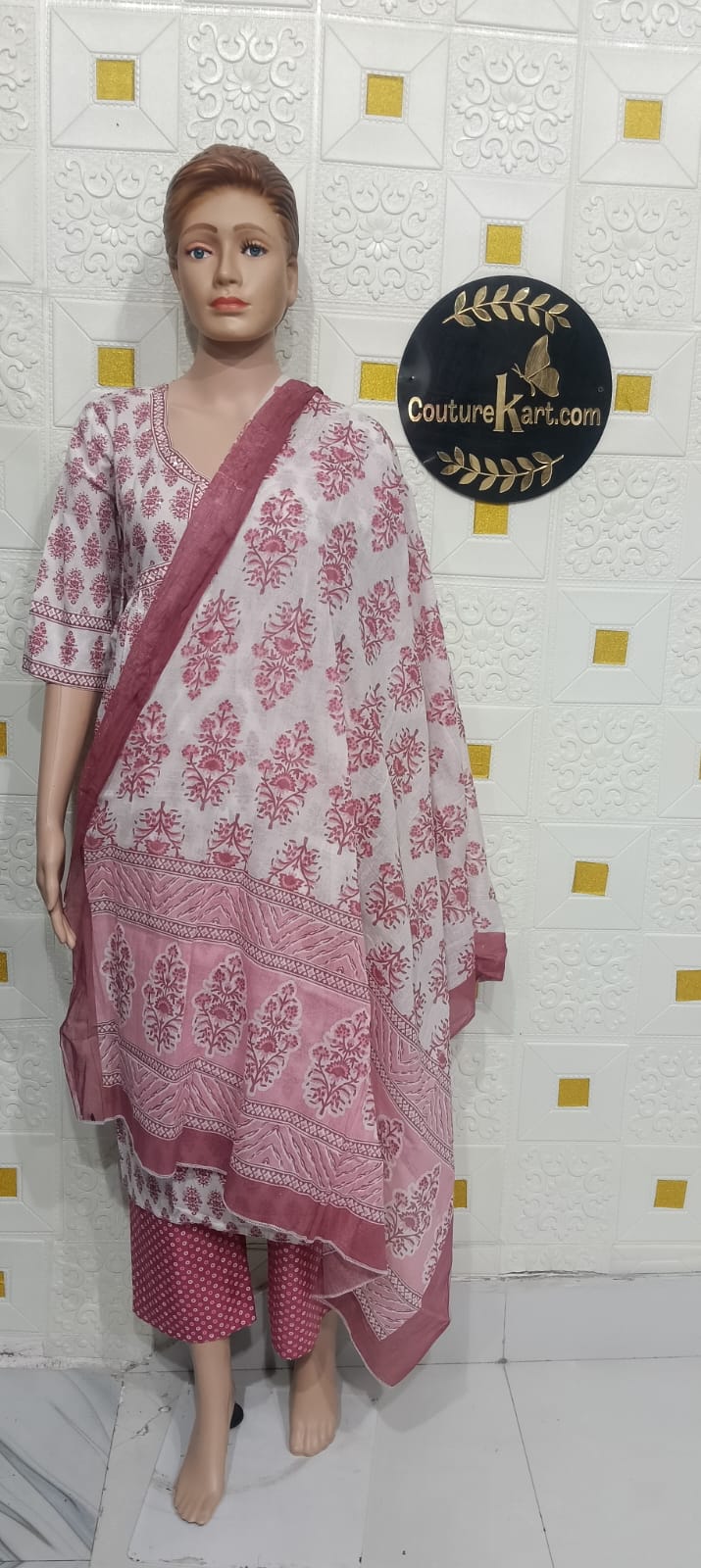 Kashmiri Cotton Embroidered 3 Pcs Suit