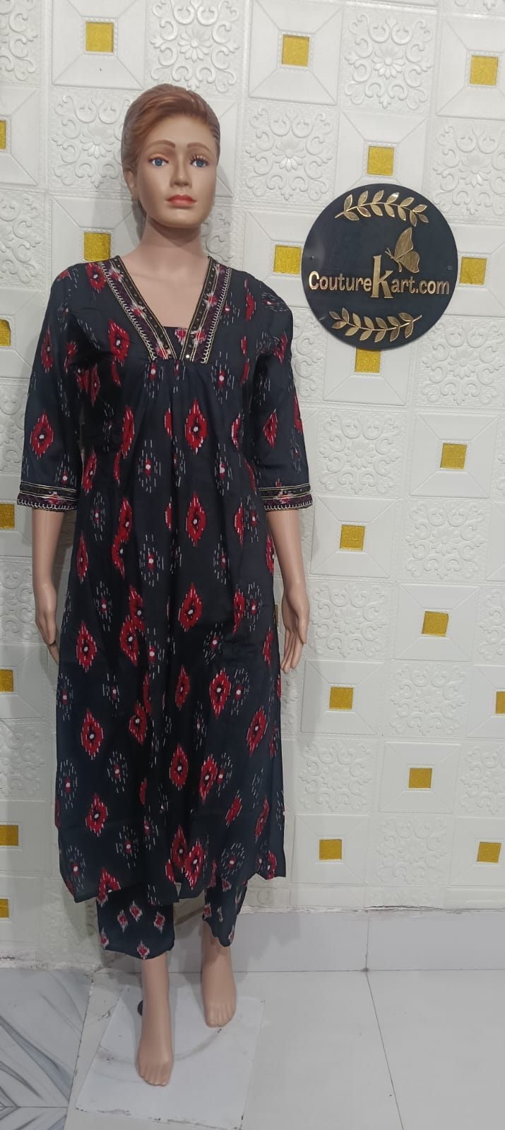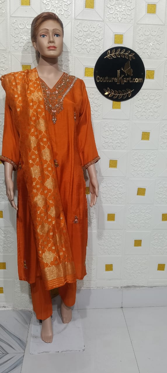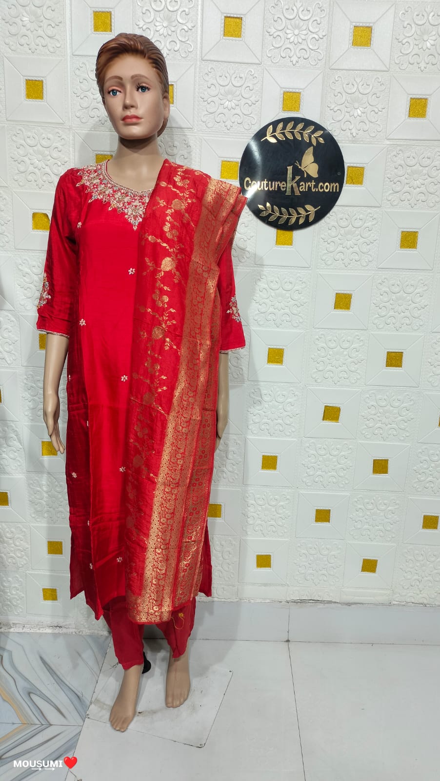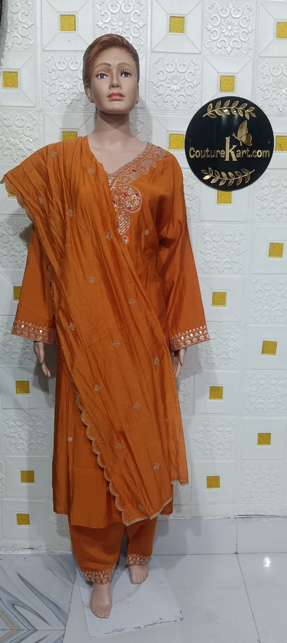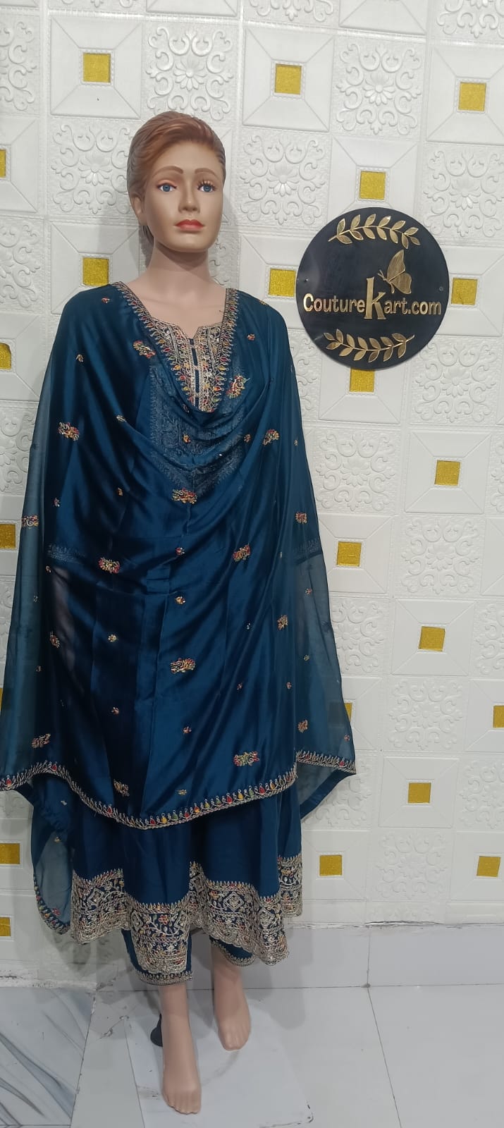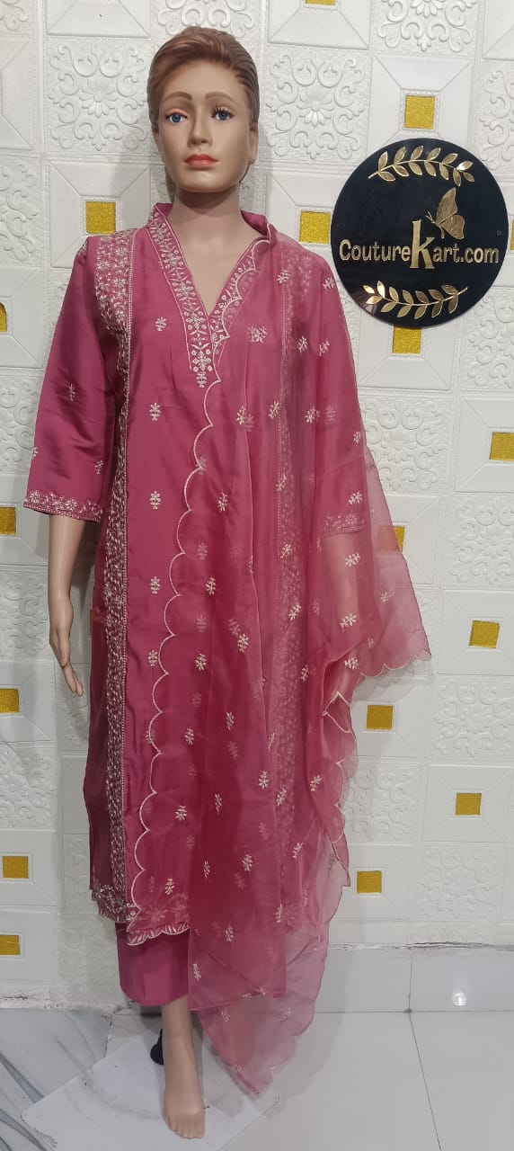 Kashmiri Cotton Embroidered 3 Pcs Suit