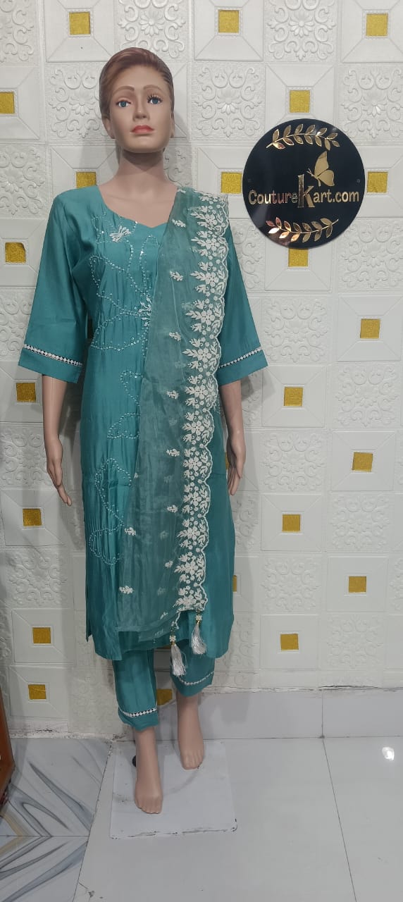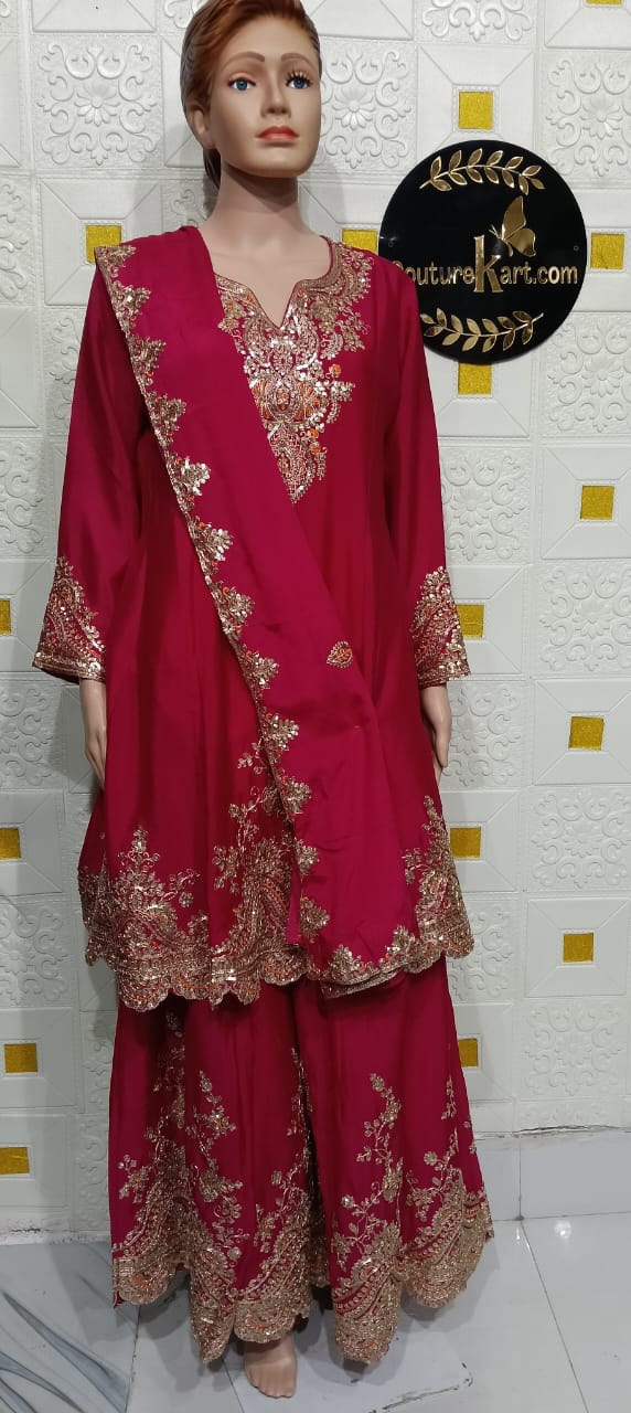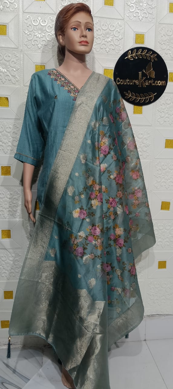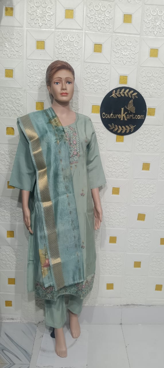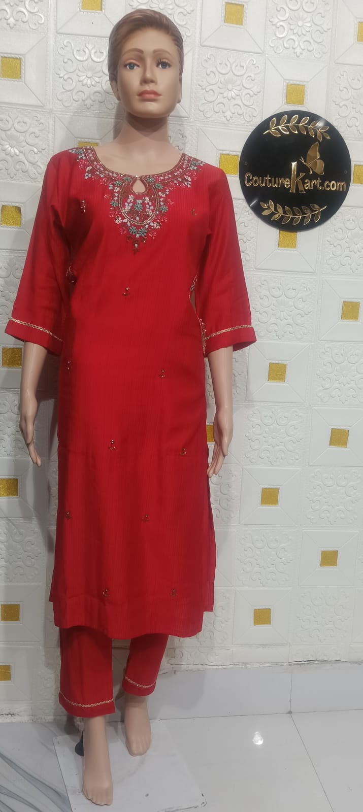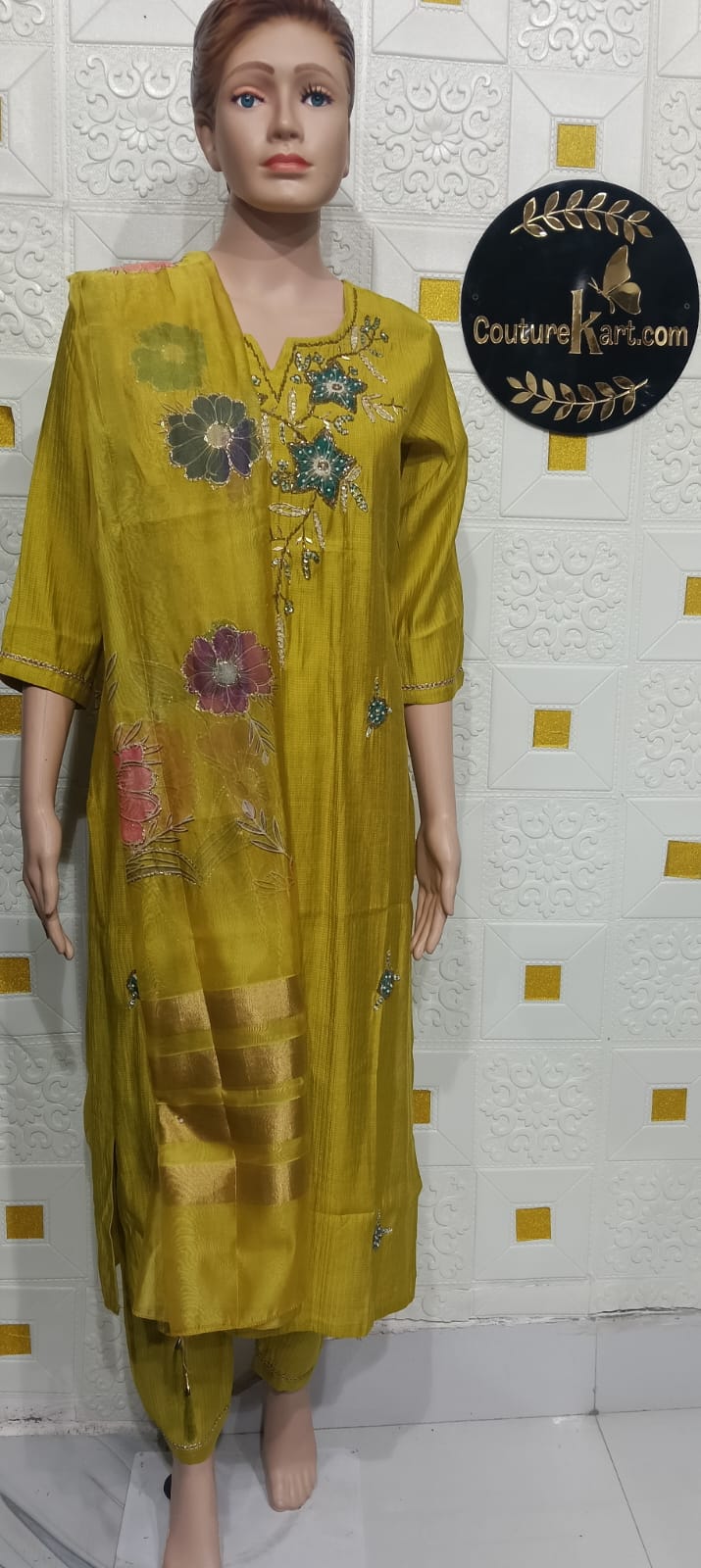Kashmiri Cotton Embroidered 3 Pcs Suit