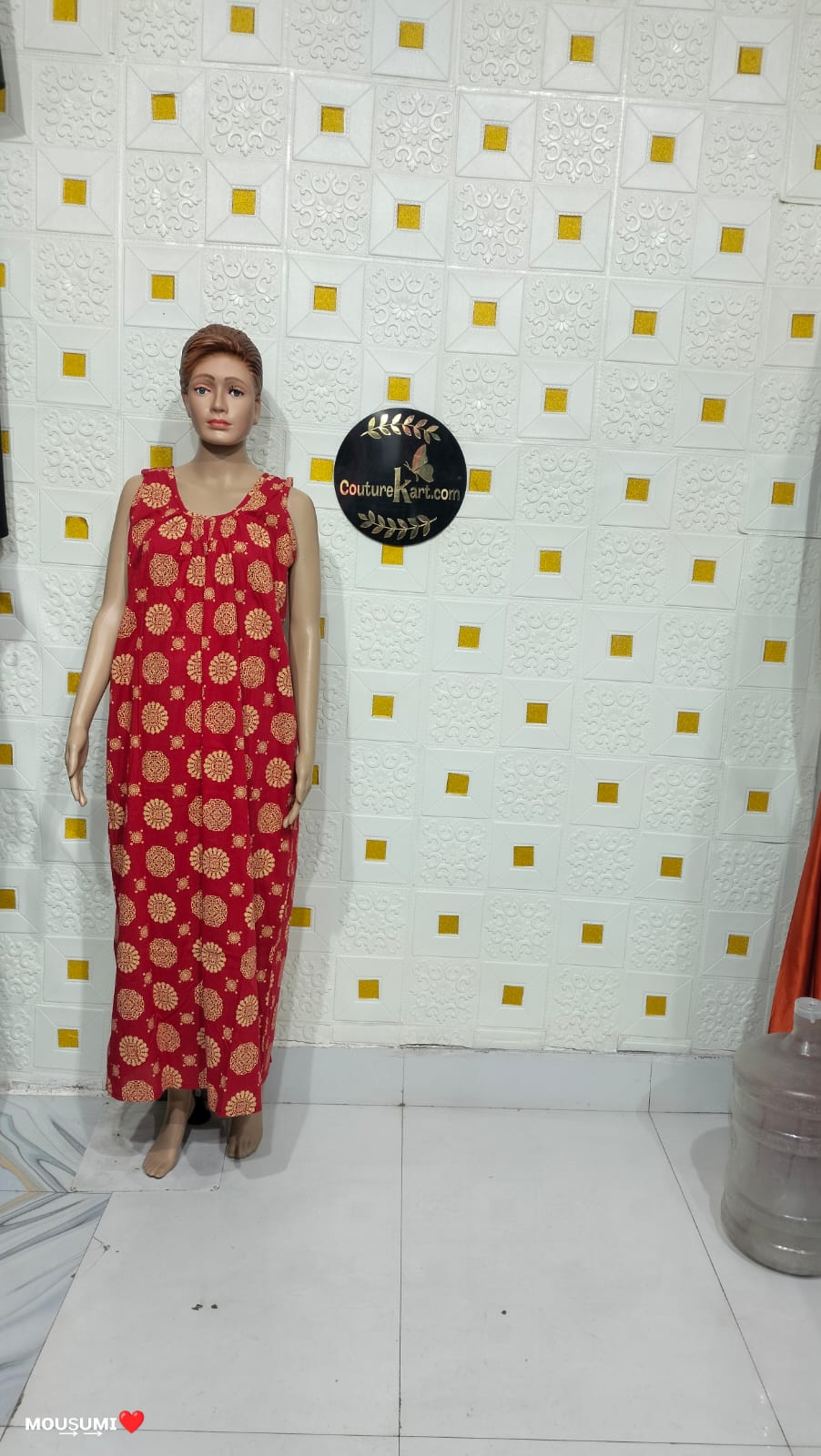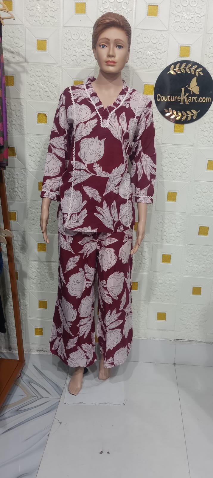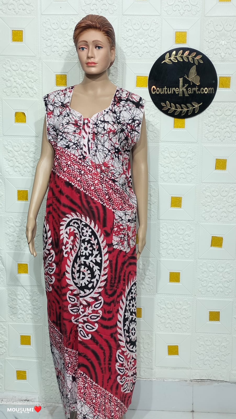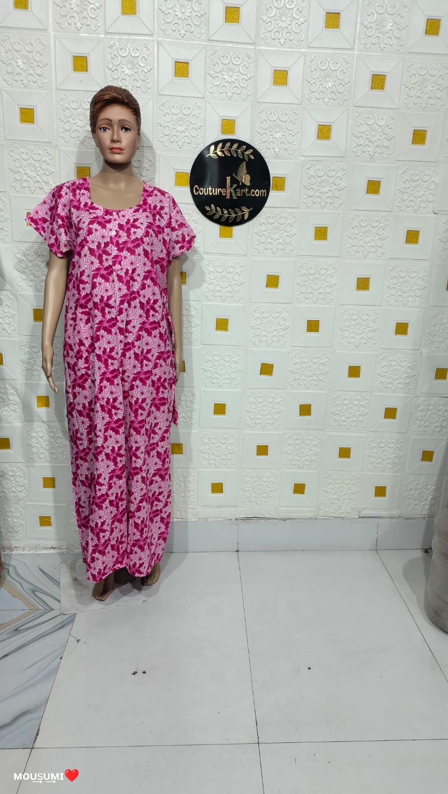 Women’s Nighty – Sleeves Attached & Lace Design (Printed)