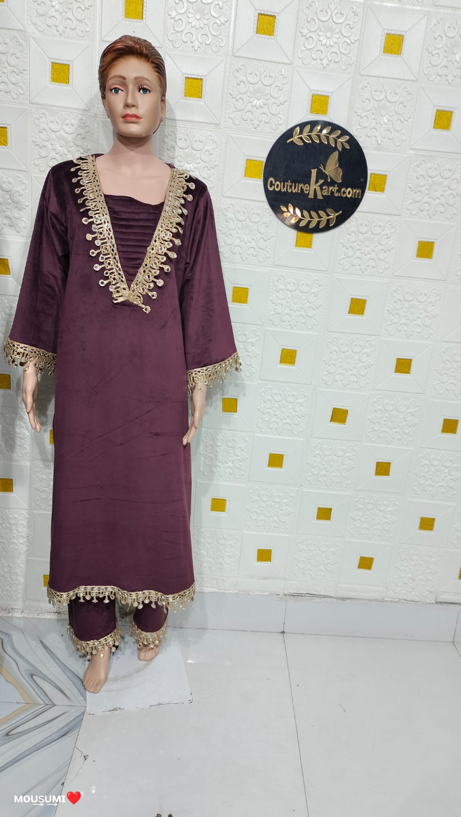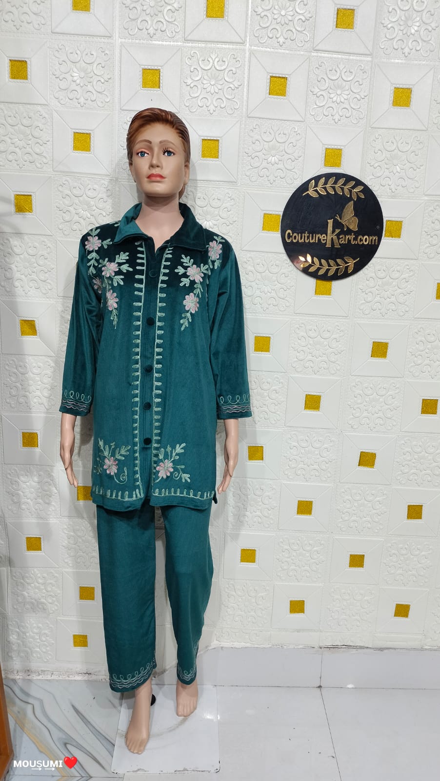 Velvet Long 2 Pcs Co-Ord Set for Women