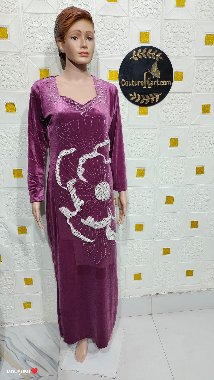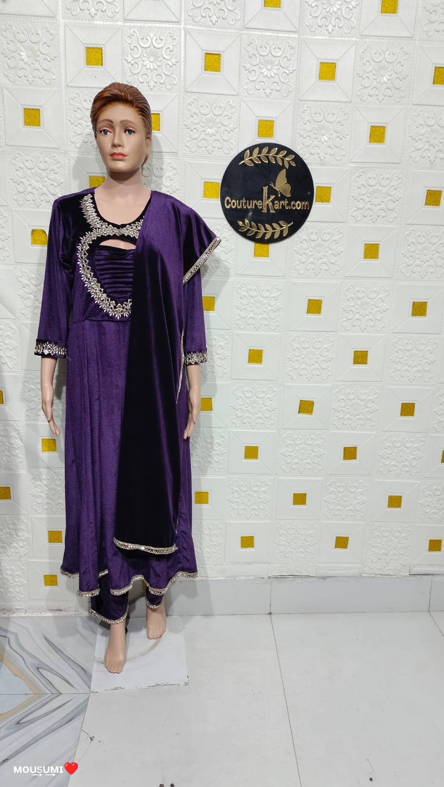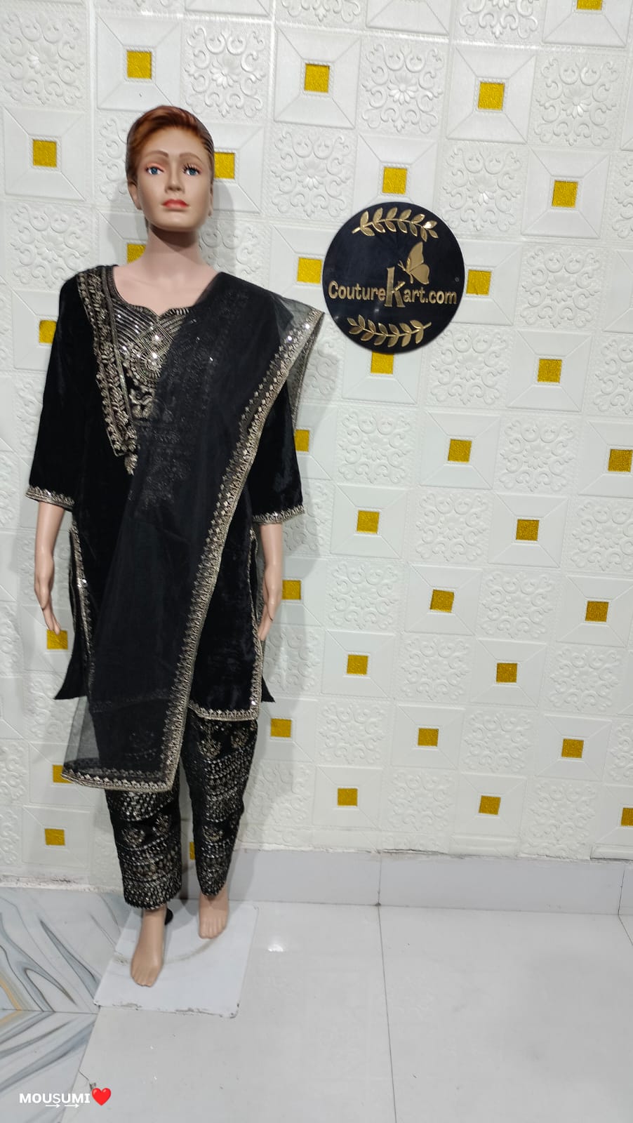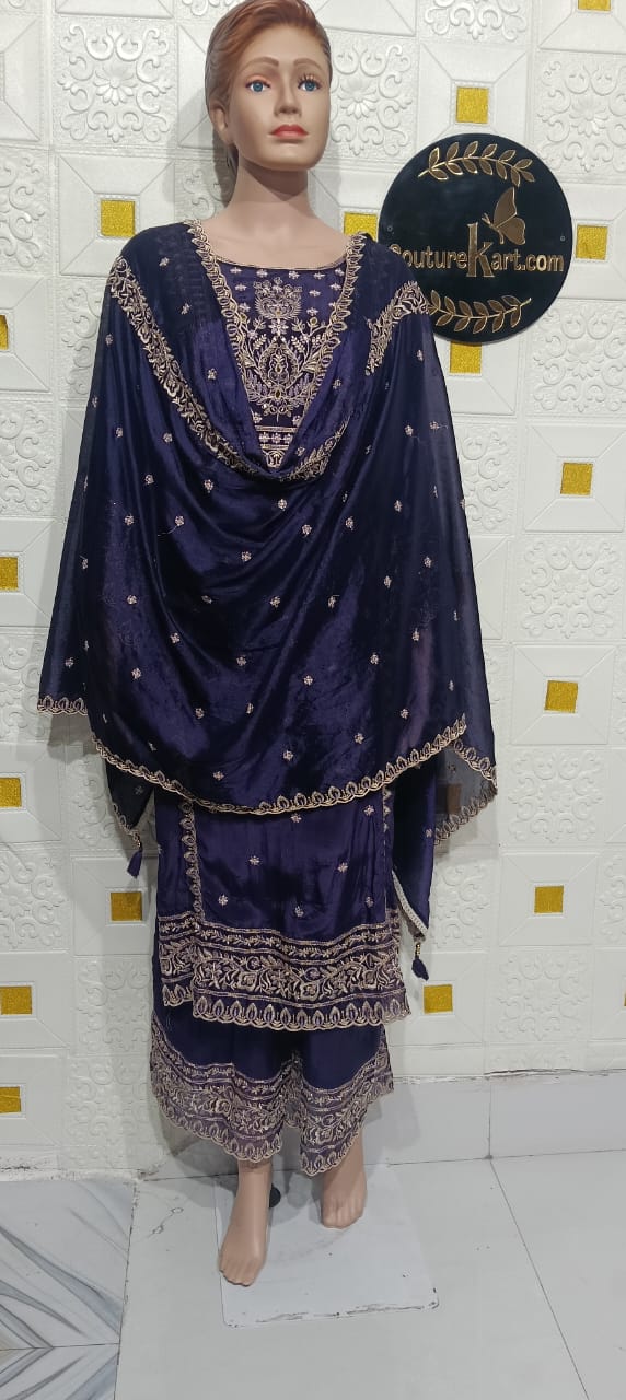 Soft Velvet Pearl Work 3 Pcs Suit For Women