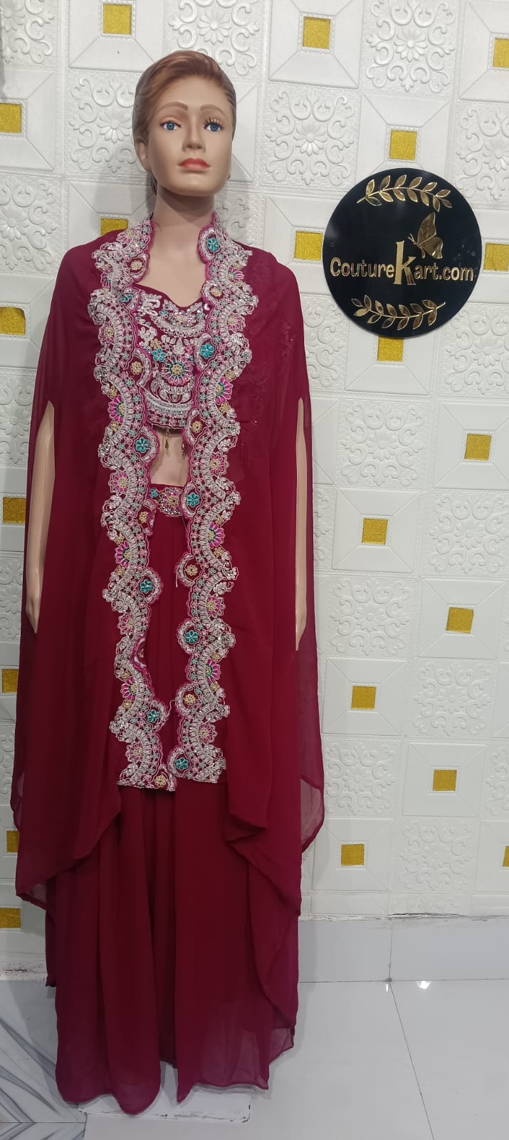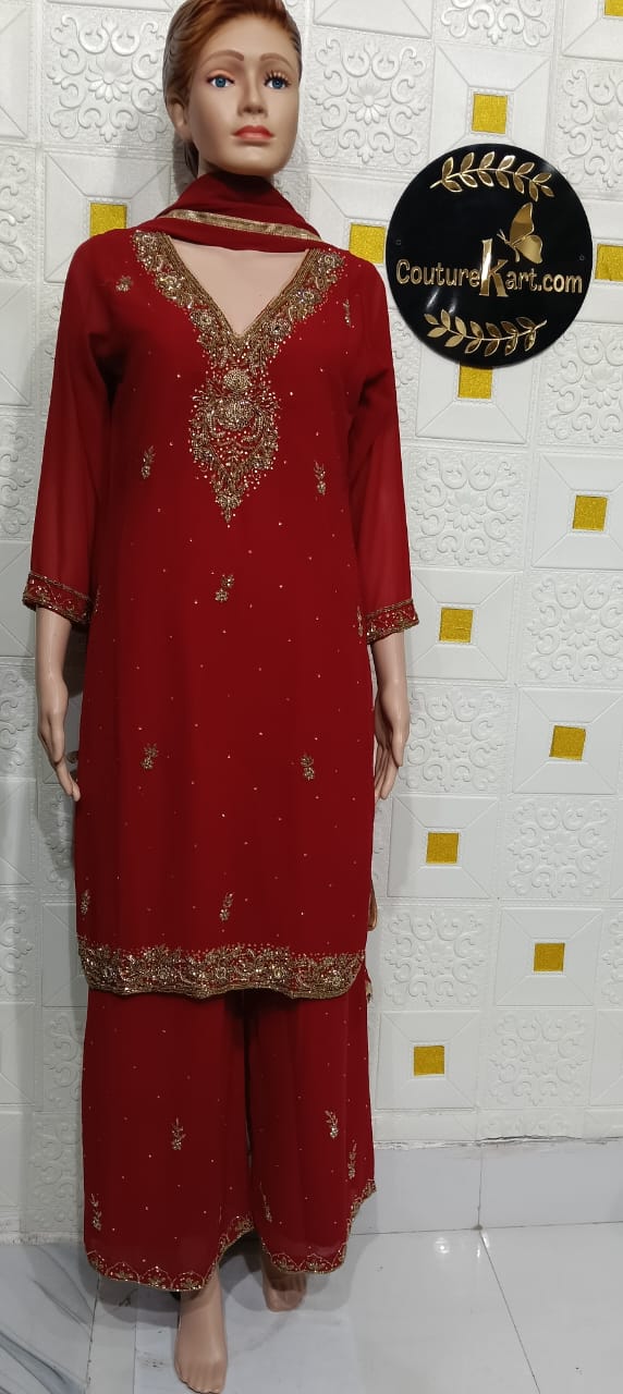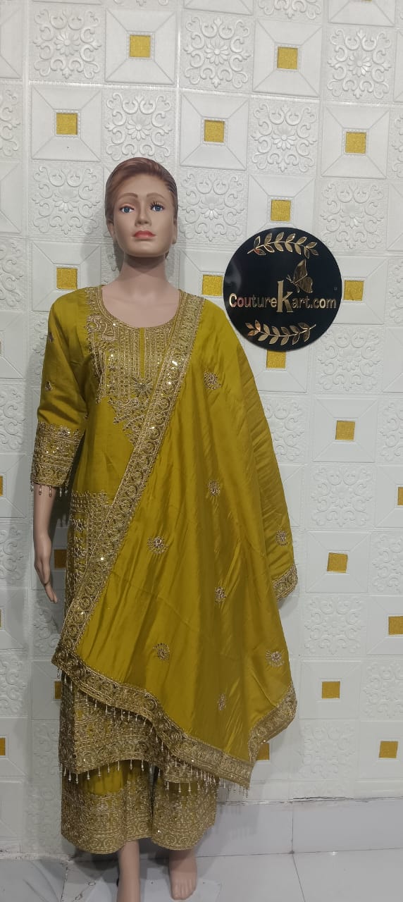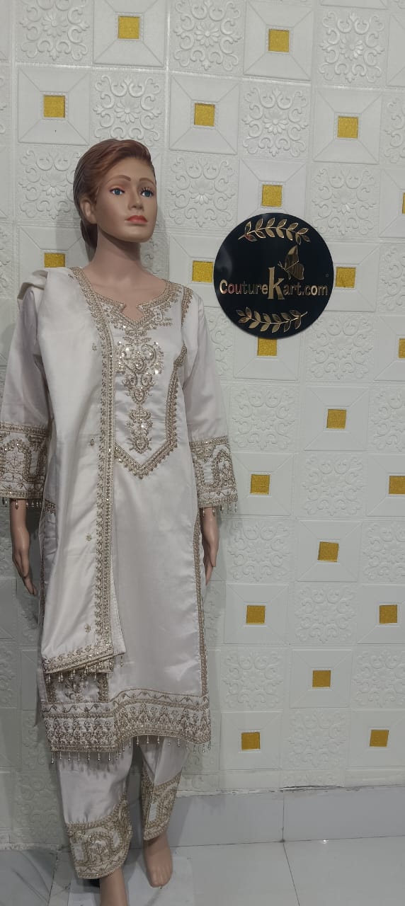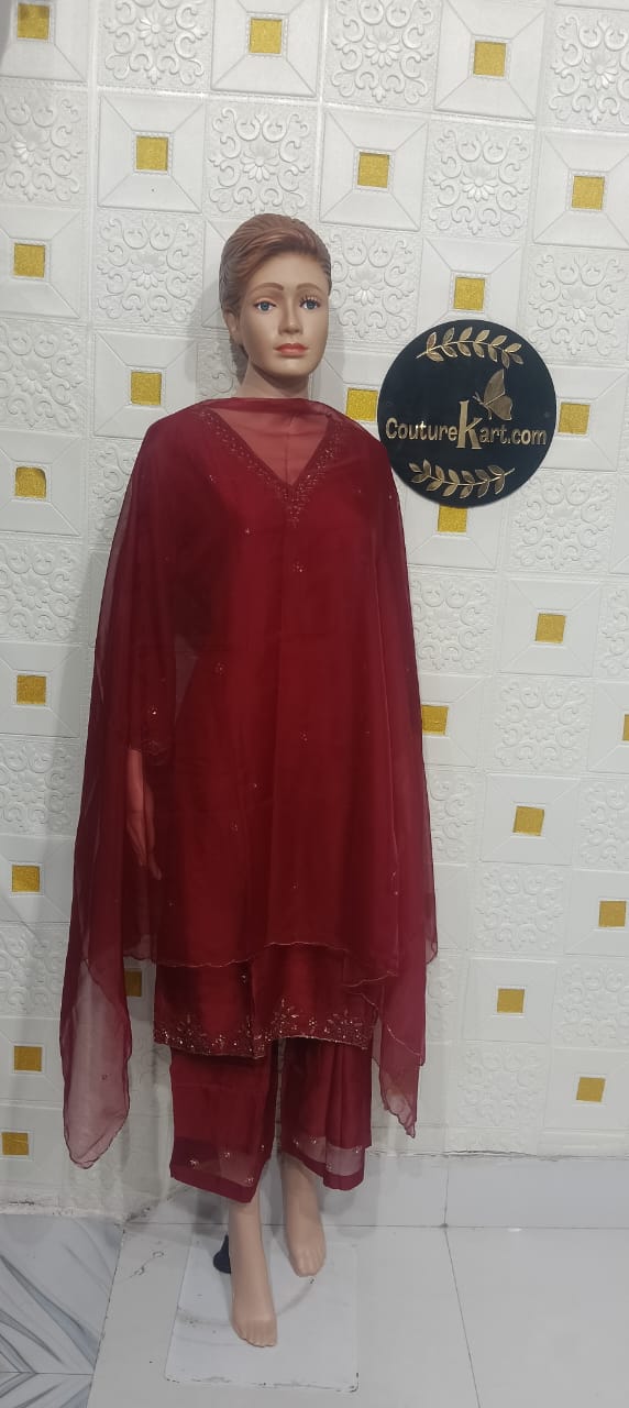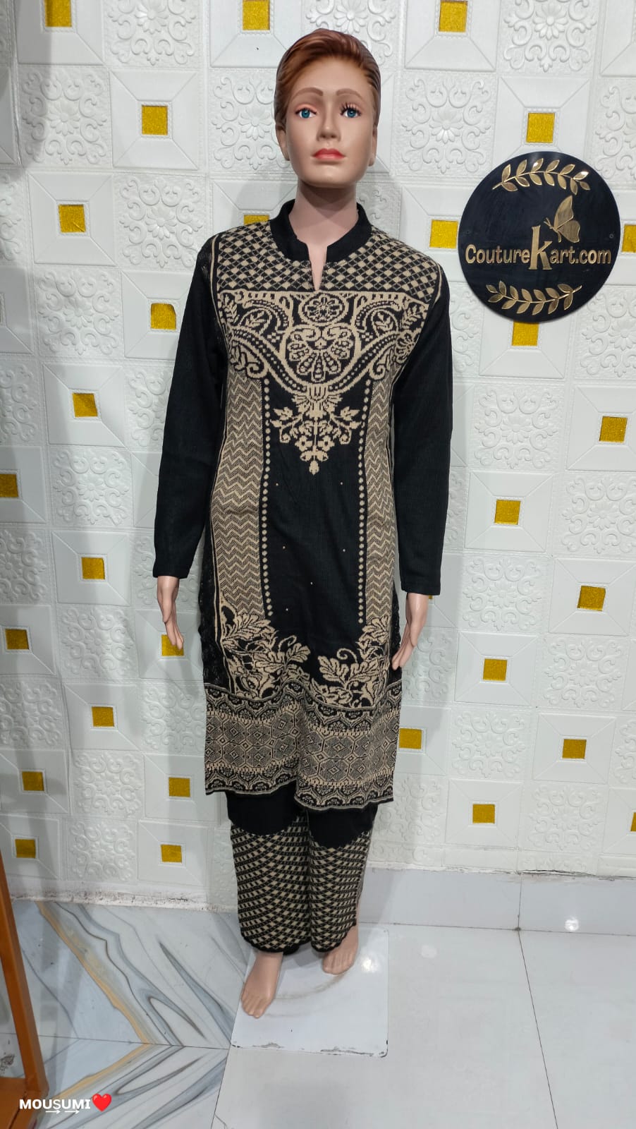 Soft Velvet Pearl Work 3 Pcs Suit For Women