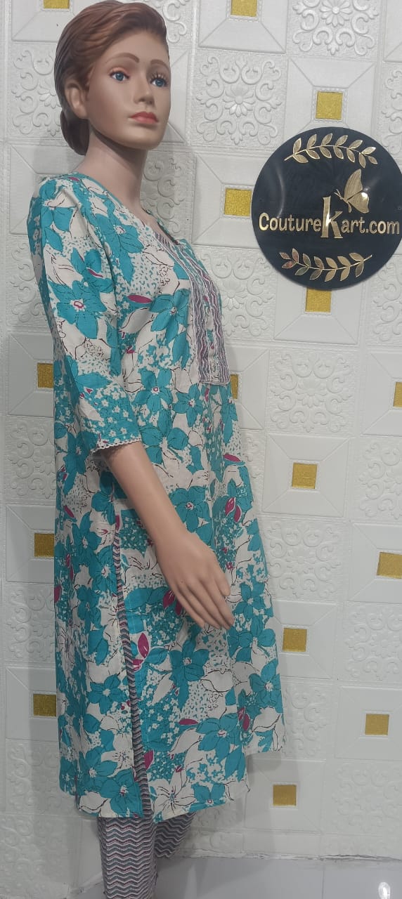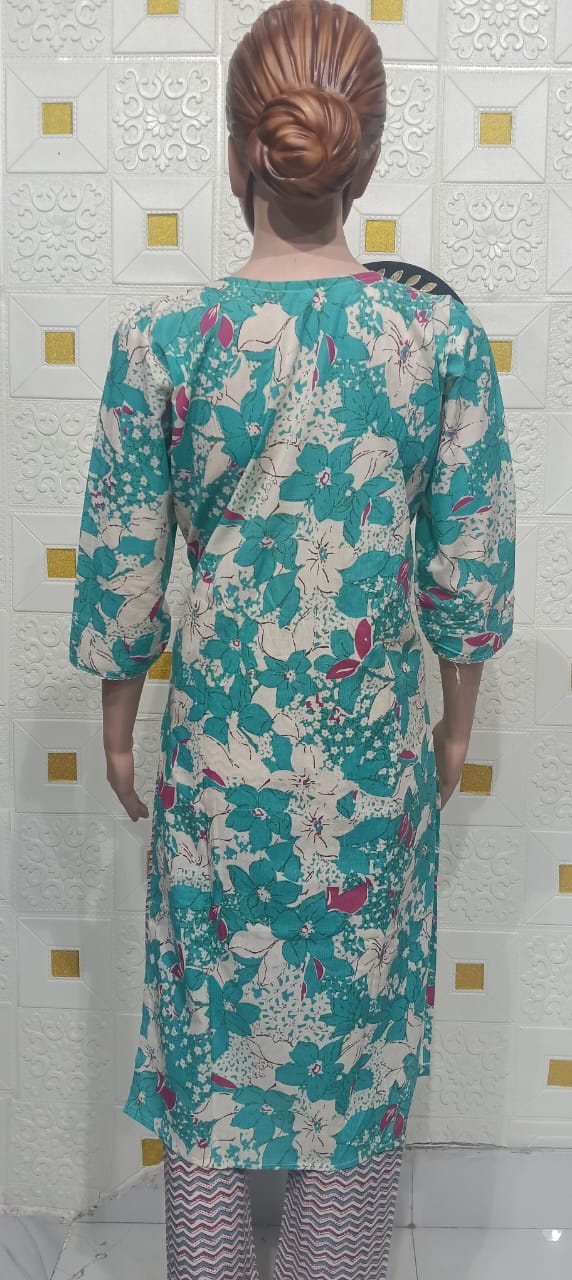 3 Piece Suit (Cotton Print) Refresh your ethnic wardrobe with this stylish and comfortable 3 Piece Cotton Print Suit, designed for effortless everyday elegance. Made from premium-quality cotton fabric, this suit features attractive printed patterns that offer a perfect blend of tradition and modern style. Ideal for daily wear, office use, or casual outings, this suit ensures all-day comfort with a graceful look. Product Details: Fabric: Pure Cotton Work: Printed Design Set Includes: Kurti, Bottom & Dupatta Style: Straight Cut Suit Occasion: Casual, Daily Wear, Office Wear, Festive Fit: Regular Fit Dupatta Fabric: Cotton / Matching Print Bottom Type: Pant / Salwar (as applicable) Care Instructions: Hand wash separately in cold water. Do not bleach. Dry in shade. Iron on low heat. Note: Actual product color may slightly vary due to photographic lighting and screen resolution.