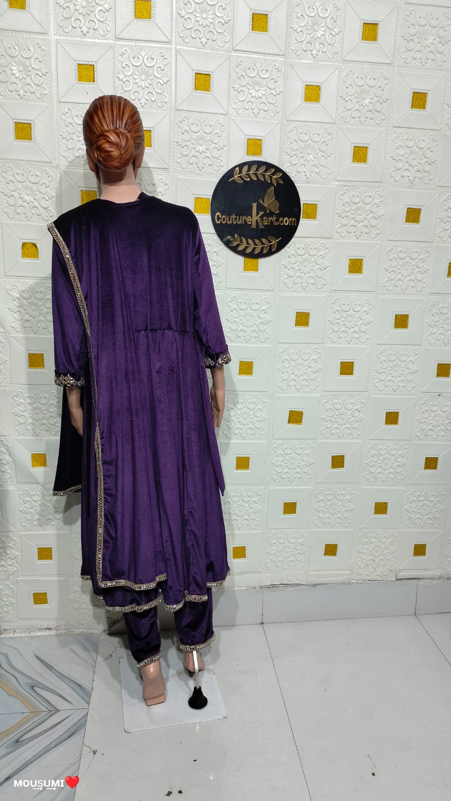 Anarkali Velvet 3 Pcs Suit for Women Turn heads with timeless elegance in our Anarkali Velvet 3 Pcs Suit, designed to bring luxury and grace to your ethnic collection. Crafted from rich, premium velvet fabric, this outfit offers a royal feel with soft comfort, making it perfect for winter festivities and special occasions. This beautiful three-piece set includes a flared Anarkali kurta, a matching bottom, and a coordinated dupatta to complete the look. The flattering silhouette and flowing design enhance your appearance, while the soft velvet fabric provides warmth and a rich finish. Ideal for weddings, parties, festive occasions, and evening wear, this suit blends traditional charm with modern style. Features: Premium quality velvet fabric 3-piece set: Anarkali kurta, bottom & dupatta Elegant flared design Soft, warm & luxurious texture Comfortable full-length fit Rich festive and party wear look Perfect for winter occasions Care Instructions: Dry clean recommended or gentle hand wash in cold water. Do not bleach. Dry in shade. Iron on low heat if needed.