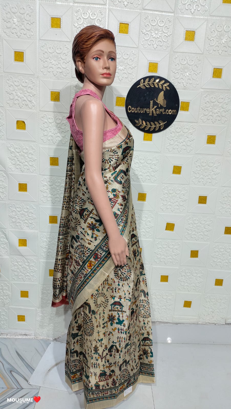 Bhagalpuri Silk Saree – Product Description Experience the elegance of authentic craftsmanship with our Bhagalpuri Silk Saree, woven from the renowned silk of Bhagalpur—famously known as the “Silk City of India.” This saree features a natural sheen, soft texture, and lightweight feel, offering unmatched comfort and a graceful drape. Its rich fabric and traditional weaving style make it a timeless choice for women who appreciate classic beauty with modern versatility. Perfect for festive occasions, office wear, cultural events, and family gatherings, the Bhagalpuri Silk Saree blends traditional charm with everyday sophistication. The smooth finish and vibrant colors elevate your style effortlessly. Features: Made from premium-quality Bhagalpuri silk Soft, lightweight fabric with a natural sheen Elegant drape suitable for all-day comfort Rich colors and traditional weaving Ideal for festive, casual, and semi-formal occasions Add a touch of refined tradition to your wardrobe with this stunning Bhagalpuri Silk Saree — a perfect blend of simplicity, elegance, and heritage