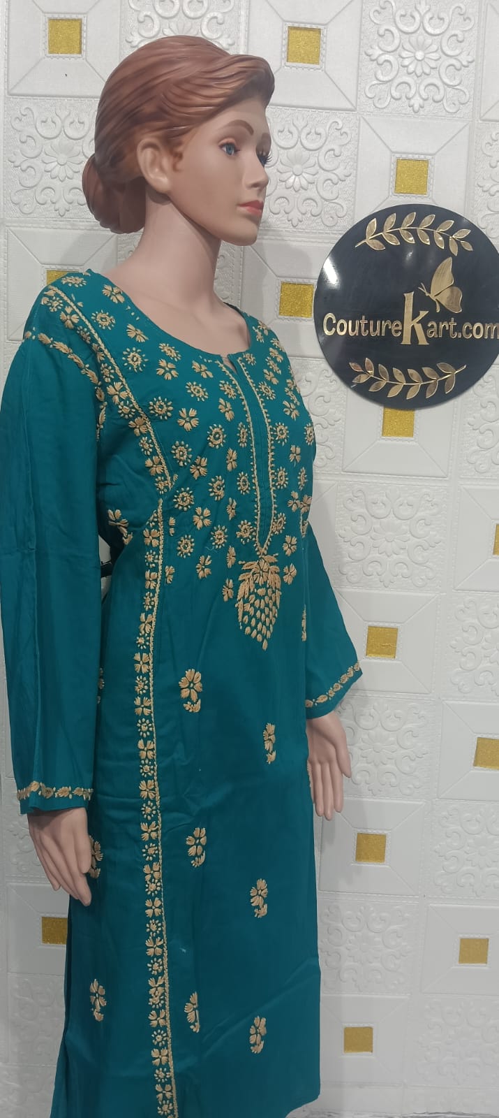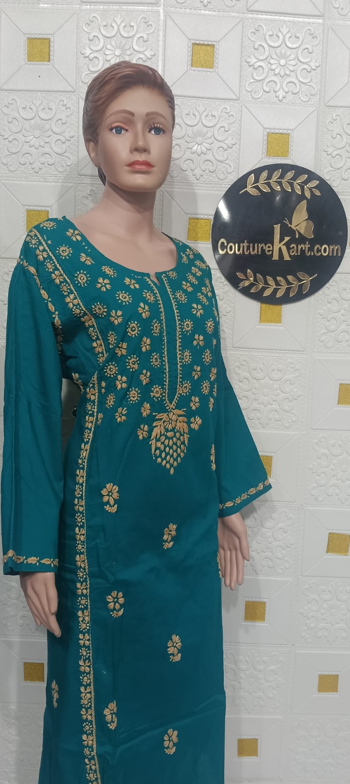 Chikankari Single Kurti (Cotton) Add effortless elegance to your everyday wardrobe with this beautiful Chikankari Cotton Kurti. Crafted from soft, breathable cotton fabric, this kurti features delicate traditional Chikankari embroidery that adds a touch of timeless charm. Designed for all-day comfort, it is perfect for casual outings, office wear, or festive gatherings. Product Details: Fabric: 100% Cotton Work: Handcrafted Chikankari Embroidery Style: Straight Kurti Sleeves: As per design Neckline: As per design Length: Knee-length / Calf-length (as applicable) Occasion: Casual, Daily Wear, Festive, Office Fit: Regular Fit Package Includes: 1 Kurti Only Care Instructions: Gentle hand wash separately in cold water. Do not bleach. Dry in shade. Iron on low heat.