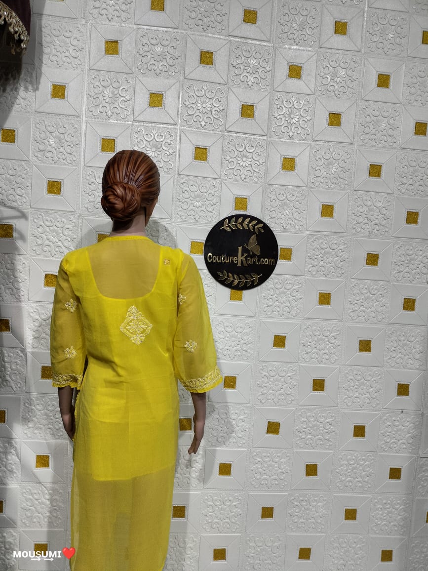 Chikankari Single Kurti (Georgette) Elevate your ethnic look with this graceful Chikankari Georgette Kurti. Crafted from soft and flowy georgette fabric, this kurti features delicate handcrafted Chikankari embroidery that adds elegance and charm. The lightweight texture ensures a comfortable fit, while the smooth drape gives a flattering silhouette. Perfect for festive occasions, parties, and elegant day wear, this kurti blends traditional craftsmanship with a modern appeal. Product Details: Fabric: Premium Georgette Work: Handcrafted Chikankari Embroidery Style: Straight Kurti Sleeves: As per design Neckline: As per design Length: Knee-length / Calf-length (as applicable) Occasion: Festive Wear, Party Wear, Casual Ethnic Fit: Regular Fit Package Includes: 1 Kurti Only Care Instructions: Dry clean recommended for best results. Do not bleach. Handle with care to maintain fabric texture.