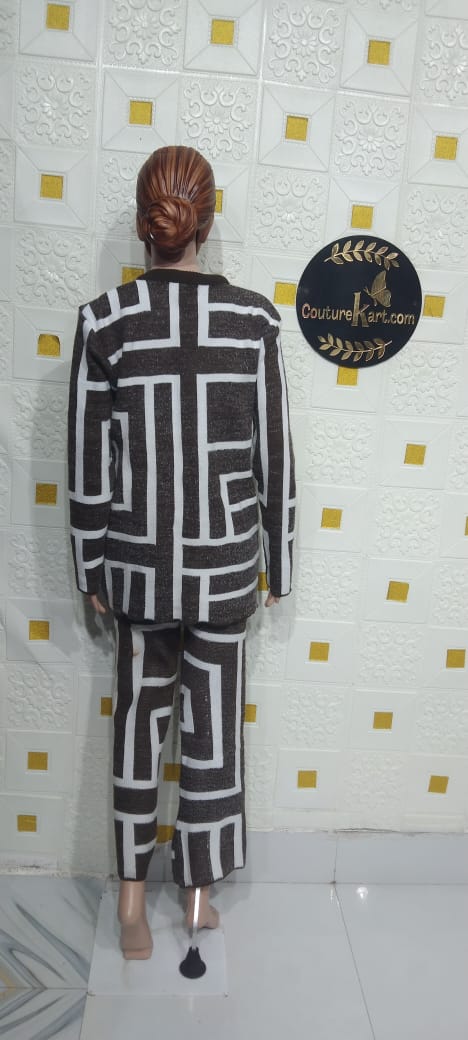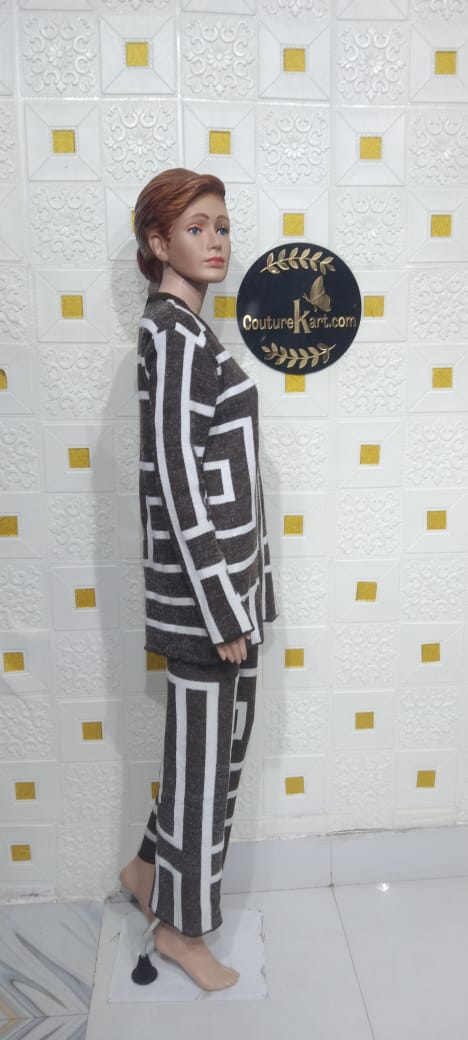 Woolen Printed Co-Ord Suit for Women Stay warm in style with our Woolen Printed Co-Ord Suit, designed to offer comfort with a fashionable edge. Made from premium-quality woolen fabric, this outfit gives a soft, cozy feel while the stylish prints add a modern and trendy look. This two-piece set includes a printed woolen top and matching bottoms, creating a perfectly coordinated winter outfit. Ideal for casual outings, office wear, travel, or daily winter use, this co-ord suit blends warmth with effortless fashion. Soft, breathable, and stylish, this set is perfect for keeping you comfortable all day long. Features: Premium woolen fabric Trendy printed design 2-piece set: Top & matching bottom Soft, warm and comfortable Modern winter styling Easy to wear and maintain Suitable for daily and casual wear Care Instructions: Dry clean recommended or gentle hand wash in cold water. Do not bleach. Dry flat in shade.