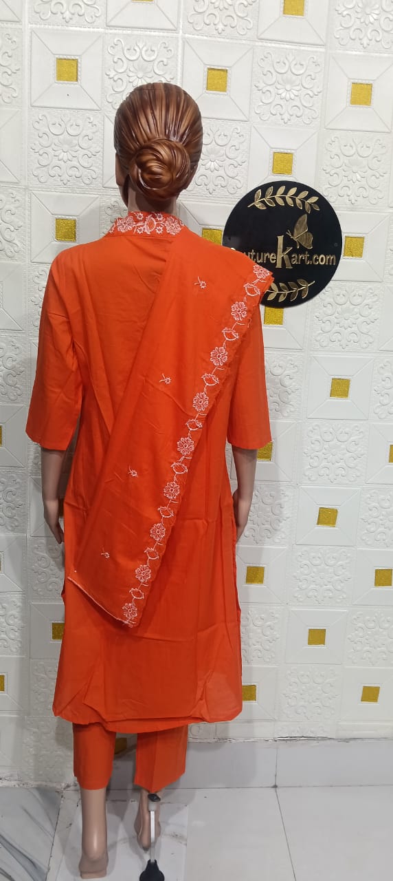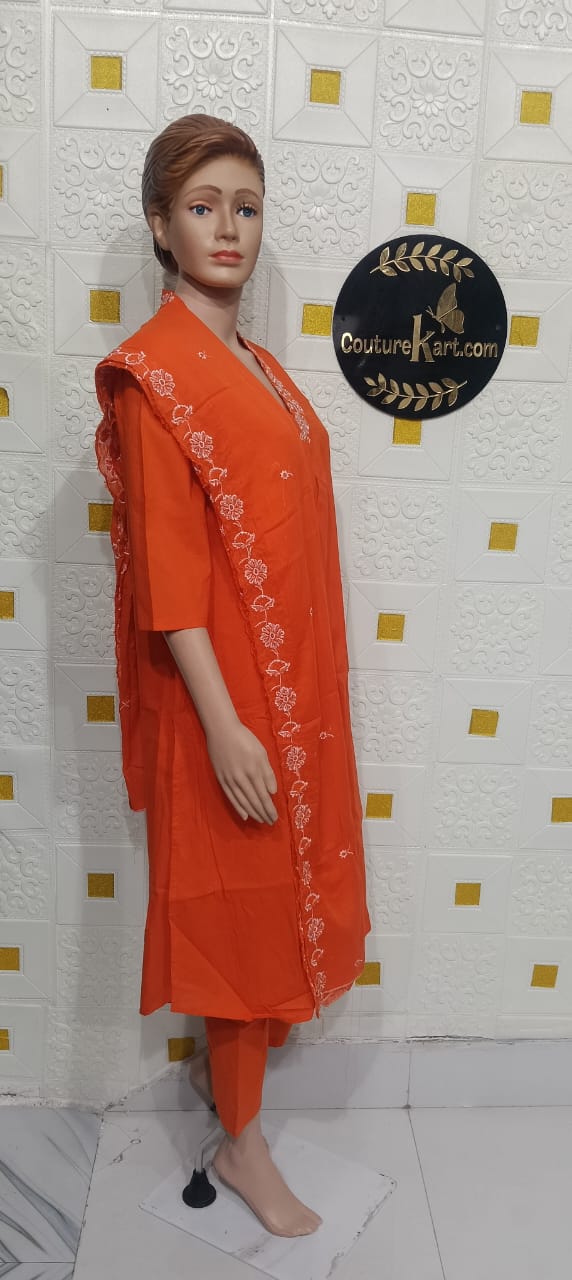 Product Description Upgrade your everyday ethnic style with this elegant Cotton 3-Piece Frock Suit, designed for comfort with a touch of grace. Made from premium-quality cotton fabric, this outfit features a flowy frock-style kurti paired with a matching bottom and a soft coordinated dupatta. The breathable texture of cotton ensures all-day comfort, while the flared silhouette adds a stylish charm—perfect for daily wear, office use, and casual gatherings. Key Features Fabric: Premium Cotton Set Includes: Frock-Style Kurti, Bottom & Dupatta Feel: Soft, Breathable & Skin-Friendly Style: Flared / A-line Frock Design Design: Printed / Embroidered / Plain (as applicable) Fit: Comfortable and Flattering Occasion: Daily Wear, Office Wear, Casual Outings Why You’ll Love It This cotton frock suit blends ease, elegance, and comfort—making it a perfect choice for everyday sophistication.