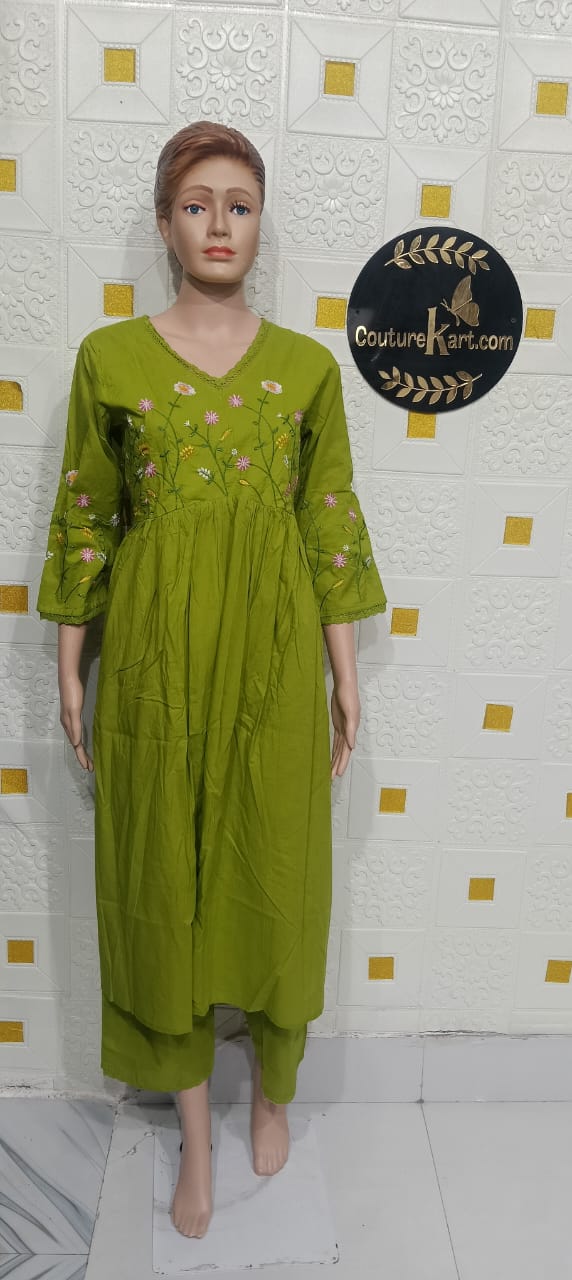 Product Description Upgrade your everyday ethnic style with this elegant Cotton 3-Piece Frock Suit, designed for comfort with a touch of grace. Made from premium-quality cotton fabric, this outfit features a flowy frock-style kurti paired with a matching bottom and a soft coordinated dupatta. The breathable texture of cotton ensures all-day comfort, while the flared silhouette adds a stylish charm—perfect for daily wear, office use, and casual gatherings. Key Features Fabric: Premium Cotton Set Includes: Frock-Style Kurti, Bottom & Dupatta Feel: Soft, Breathable & Skin-Friendly Style: Flared / A-line Frock Design Design: Printed / Embroidered / Plain (as applicable) Fit: Comfortable and Flattering Occasion: Daily Wear, Office Wear, Casual Outings Why You’ll Love It This cotton frock suit blends ease, elegance, and comfort—making it a perfect choice for everyday sophistication.