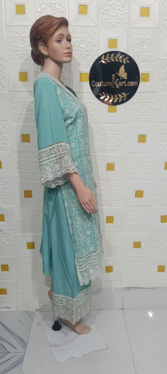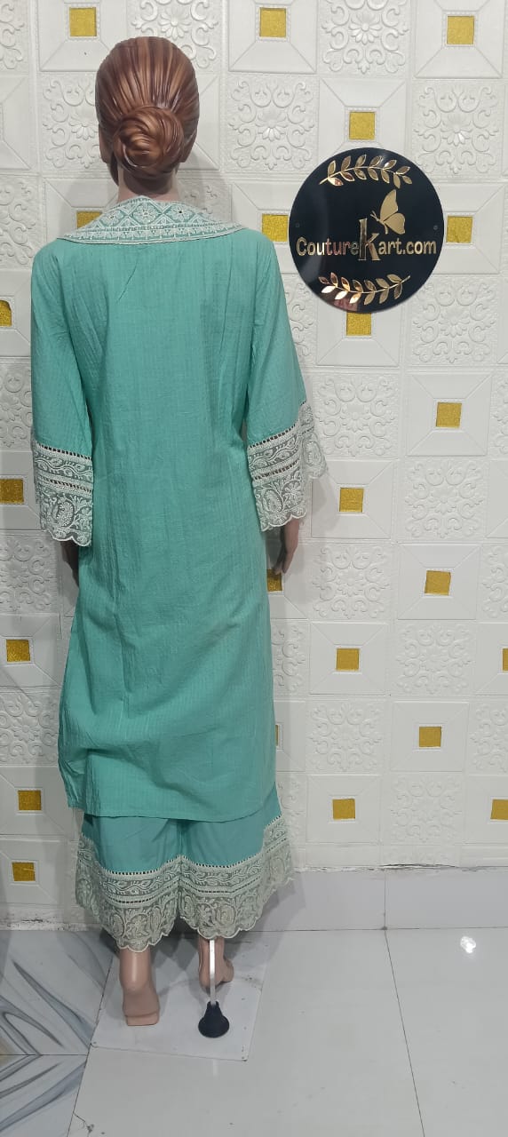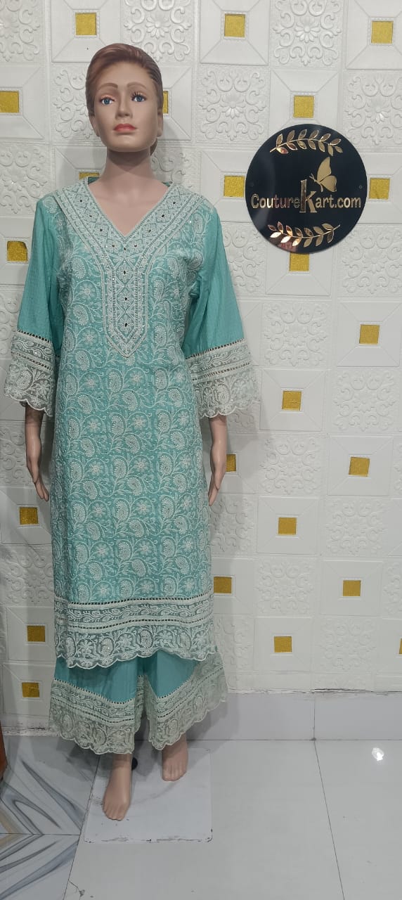 Product Description Refresh your everyday ethnic wardrobe with this comfortable and stylish Cotton 3-Piece Suit, designed for all-day ease and effortless elegance. Made from premium-quality cotton fabric, this set features a beautifully stitched kurti, a matching bottom, and a soft coordinated dupatta. The breathable texture of cotton keeps you cool and comfortable, making it perfect for daily wear, office use, casual outings, and small gatherings. Key Features Fabric: Premium Cotton Set Includes: Kurti, Bottom & Dupatta Feel: Soft, Breathable & Skin-Friendly Design: Printed / Embroidered / Plain (as applicable) Fit: Comfortable and Relaxed Occasion: Daily Wear, Office Wear, Casual & Semi-Formal Why You’ll Love It Lightweight, easy to wear, and stylish in design, this cotton suit is the perfect blend of comfort and simplicity for everyday elegance.