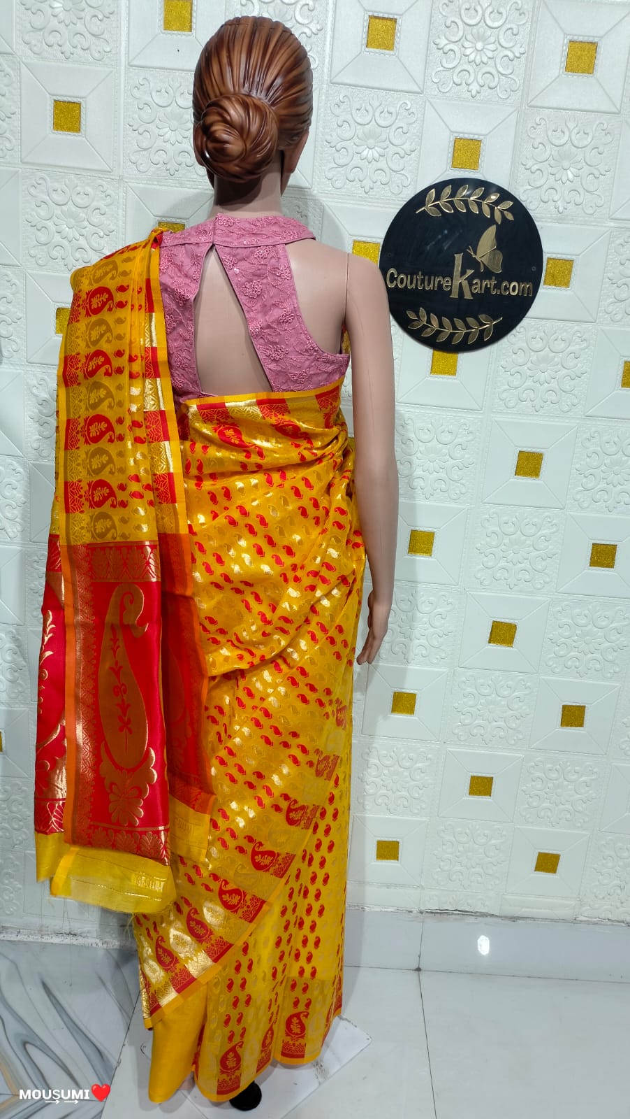 Handloom Jamdani Saree – Product Description Celebrate the beauty of timeless craftsmanship with our exquisite Handloom Jamdani Saree. Woven by skilled artisans using traditional techniques, this saree features delicate, artistic motifs seamlessly crafted into the fabric—an iconic hallmark of Jamdani weaving. Each intricate pattern is handpicked on the loom, making every saree a unique work of art. Made from premium-quality, lightweight fabric, the saree offers exceptional comfort and a graceful drape. Its soft texture and detailed designs make it a perfect choice for festive occasions, cultural functions, weddings, or elegant everyday wear. With its rich heritage appeal and contemporary elegance, the Handloom Jamdani Saree beautifully blends tradition with modern style. Features: Authentic handloom Jamdani weave Intricate handpicked motifs crafted with precision Lightweight, breathable, and soft-on-skin fabric Elegant drape with a rich, traditional finish Perfect for weddings, festivals, and special occasions