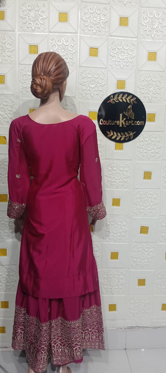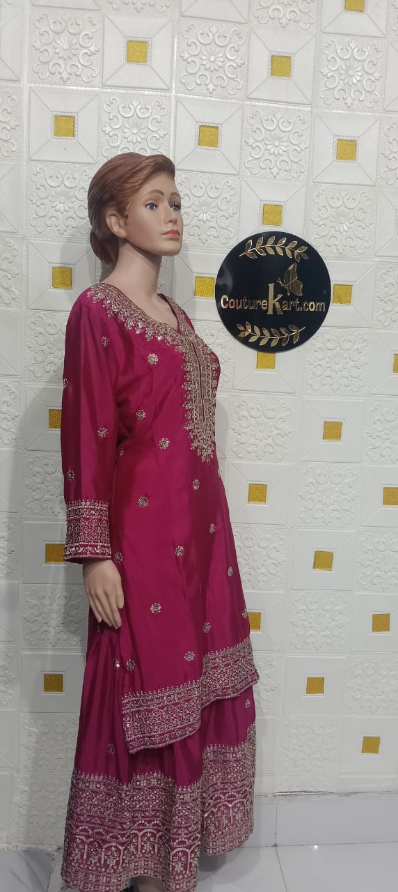 Product Description Embrace traditional elegance with this beautifully designed Pakistani Georgette Sharara Suit, crafted to give you a graceful and luxurious look. Made from soft and lightweight georgette fabric, the outfit features a stylish kurti paired with a flared sharara and a matching dupatta that adds charm and sophistication. The smooth drape and flowy texture of georgette enhance comfort while highlighting the rich detailing, making it perfect for weddings, festive occasions, and party wear. Key Features Fabric: Premium Georgette Style: Pakistani Sharara Suit Set Includes: Kurti, Sharara & Dupatta Texture: Lightweight, Flowing & Comfortable Design: Elegant embroidery / embellishments (as applicable) Fit: Flattering and easy to wear Occasion: Wedding Wear, Party Wear, Festive Functions Why You’ll Love It This sharara suit blends a classic Pakistani silhouette with modern elegance, giving you a timeless look for every special moment.