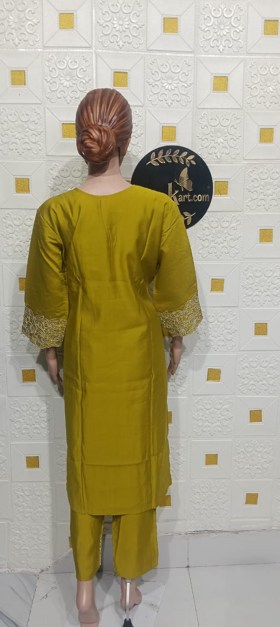 Product Description Bring elegance and luxury to your wardrobe with this beautifully designed Silk 3-Piece Suit, perfect for festive and special occasions. Crafted from premium-quality silk fabric, this suit includes a stylish kurti, a comfortable matching bottom, and a coordinated dupatta for a complete traditional look. The rich texture and natural sheen of silk enhance the overall appeal, making it an ideal outfit for weddings, parties, and celebrations. Key Features Fabric: Premium Silk Set Includes: Kurti, Bottom & Dupatta Feel: Soft, Smooth & Luxurious Design: Elegant detailing / embroidery (as applicable) Fit: Comfortable and flattering silhouette Occasion: Wedding Wear, Party Wear, Festive Functions Why You’ll Love It This silk suit combines timeless style with all-day comfort, giving you a refined look for every special moment.