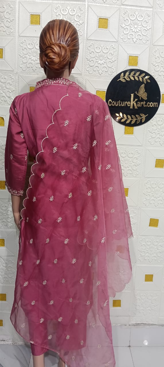 Product Description Bring elegance and luxury to your wardrobe with this beautifully designed Silk 3-Piece Suit, perfect for festive and special occasions. Crafted from premium-quality silk fabric, this suit includes a stylish kurti, a comfortable matching bottom, and a coordinated dupatta for a complete traditional look. The rich texture and natural sheen of silk enhance the overall appeal, making it an ideal outfit for weddings, parties, and celebrations. Key Features Fabric: Premium Silk Set Includes: Kurti, Bottom & Dupatta Feel: Soft, Smooth & Luxurious Design: Elegant detailing / embroidery (as applicable) Fit: Comfortable and flattering silhouette Occasion: Wedding Wear, Party Wear, Festive Functions Why You’ll Love It This silk suit combines timeless style with all-day comfort, giving you a refined look for every special moment.