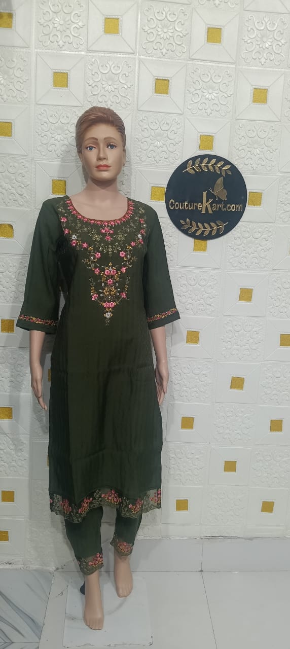 Product Description Bring elegance and luxury to your wardrobe with this beautifully designed Silk 3-Piece Suit, perfect for festive and special occasions. Crafted from premium-quality silk fabric, this suit includes a stylish kurti, a comfortable matching bottom, and a coordinated dupatta for a complete traditional look. The rich texture and natural sheen of silk enhance the overall appeal, making it an ideal outfit for weddings, parties, and celebrations. Key Features Fabric: Premium Silk Set Includes: Kurti, Bottom & Dupatta Feel: Soft, Smooth & Luxurious Design: Elegant detailing / embroidery (as applicable) Fit: Comfortable and flattering silhouette Occasion: Wedding Wear, Party Wear, Festive Functions Why You’ll Love It This silk suit combines timeless style with all-day comfort, giving you a refined look for every special moment.