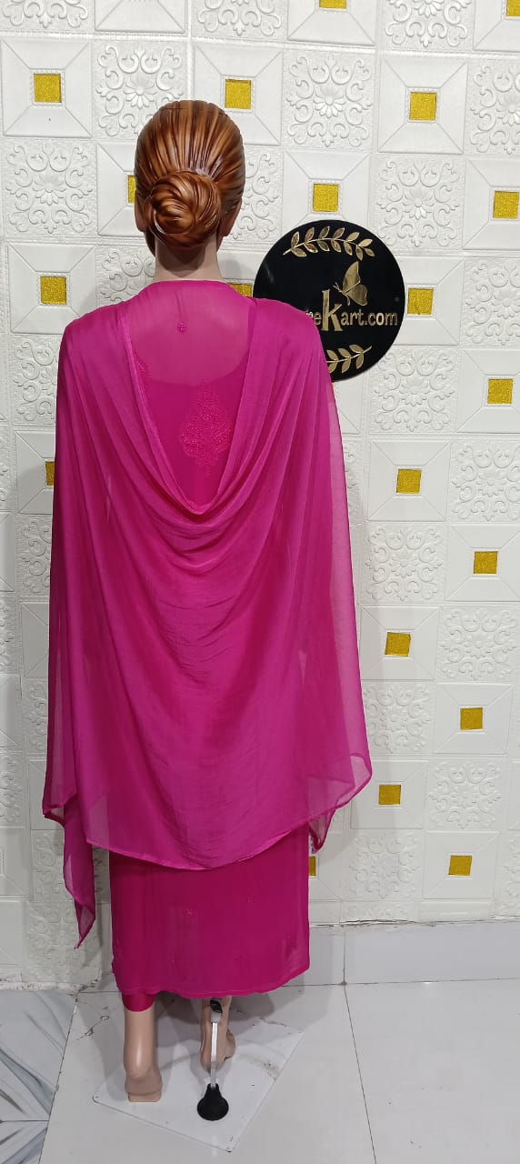 Product Description Add elegance and charm to your festive wardrobe with this stunning Three Piece Party Wear Suit crafted in soft georgette fabric. Designed for a graceful and flowy look, this outfit features a beautifully tailored kurti, a matching bottom, and a coordinated dupatta that completes the ensemble. The lightweight drape of georgette combined with fine detailing gives this suit a rich, sophisticated appeal—perfect for parties, weddings, and special occasions. Key Features Fabric: Premium Georgette Set Includes: Kurti, Bottom & Dupatta Style: Party Wear / Festive Collection Texture: Soft, Lightweight & Flowing Design: Elegant embroidery / embellishments (if applicable) Fit: Comfortable and flattering silhouette Occasion: Party Wear, Wedding Functions, Festive Events Why You’ll Love It This georgette suit offers a perfect balance of beauty and comfort, giving you an effortlessly stylish look for every celebration.